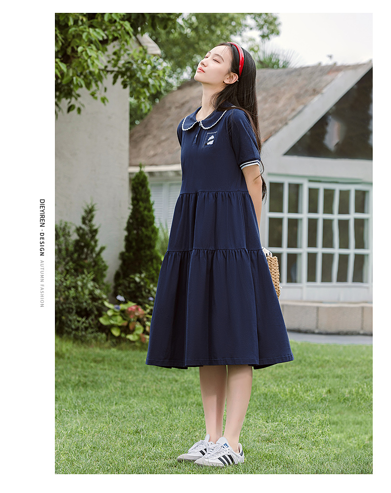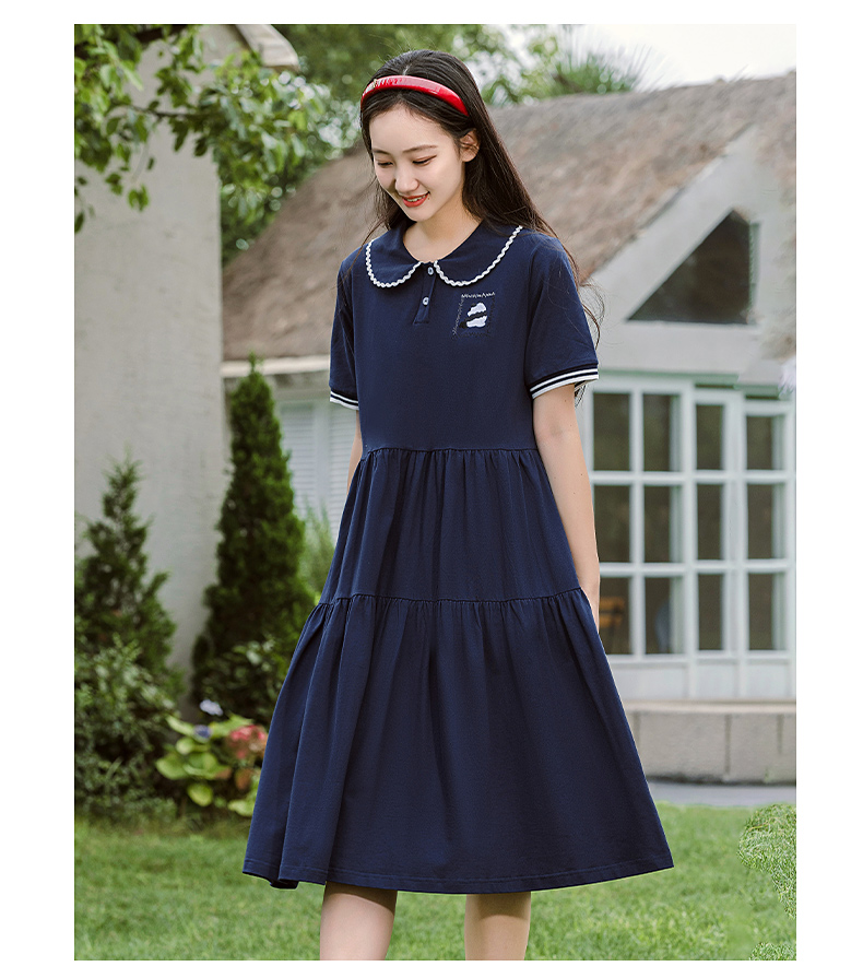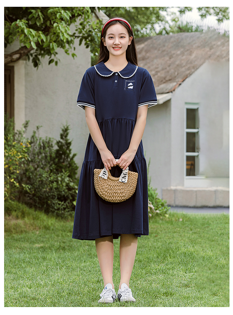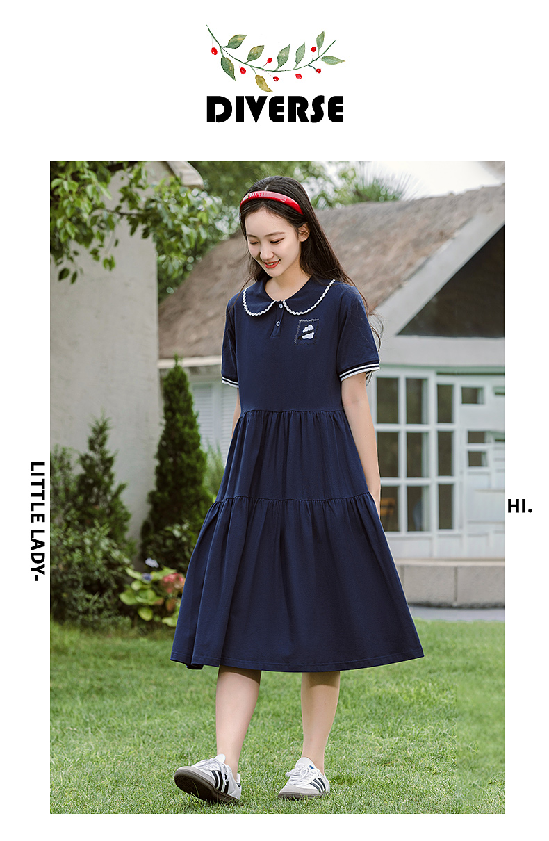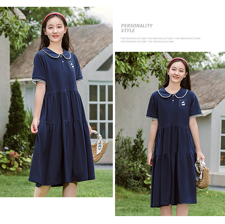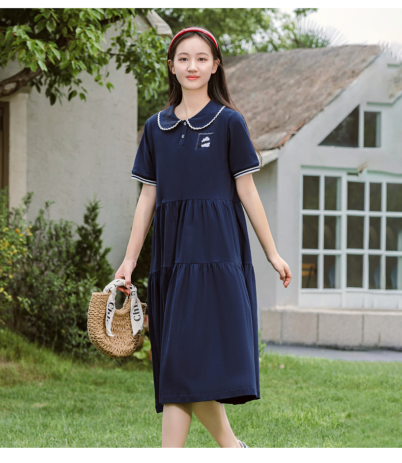7053少女连衣裙夏季新款高初中学生运动时尚POLO裙学院风长款裙子