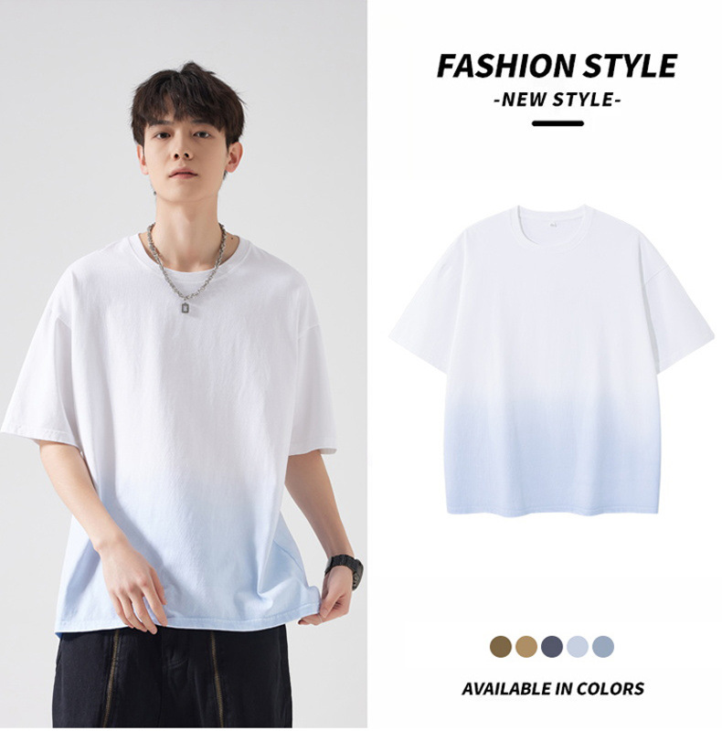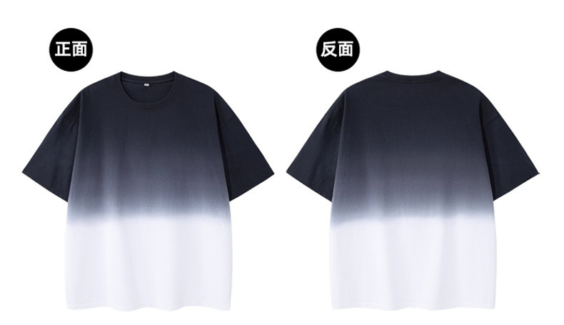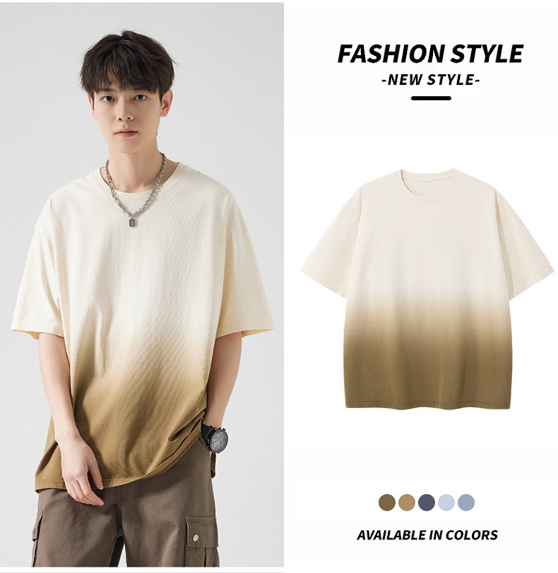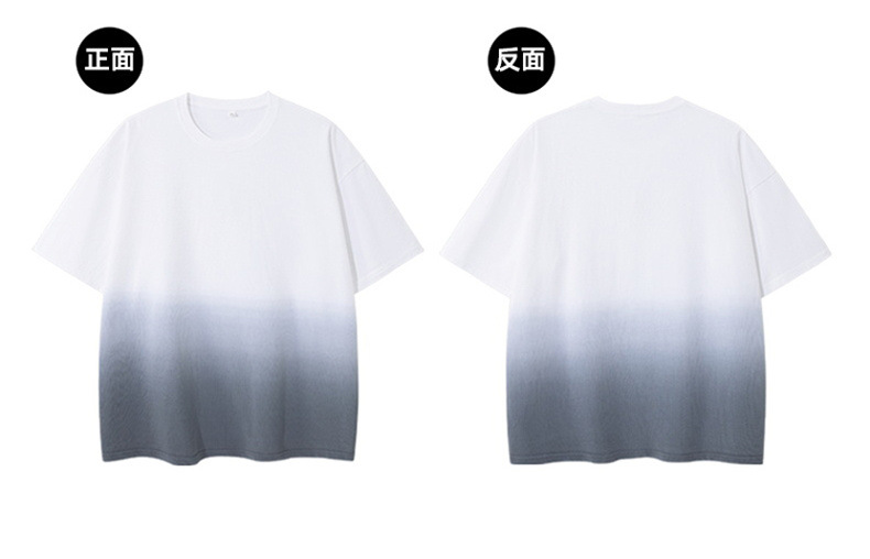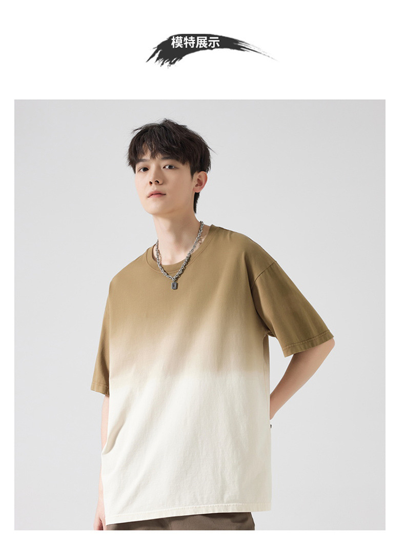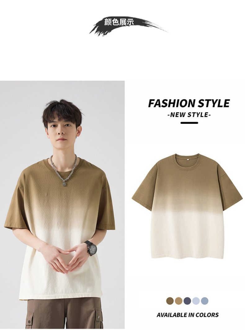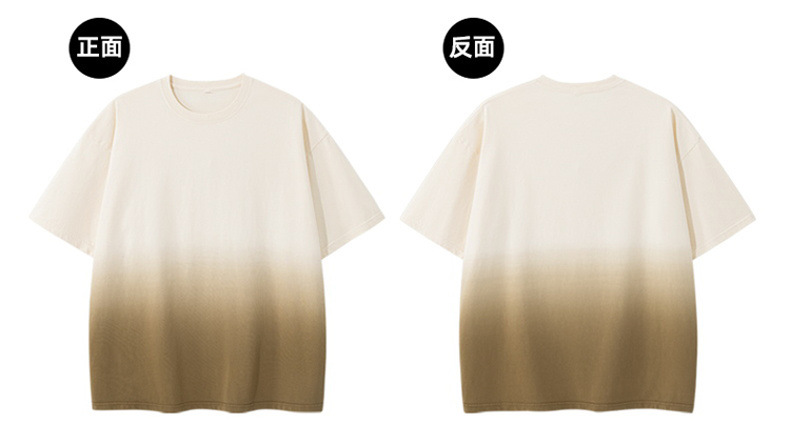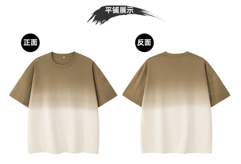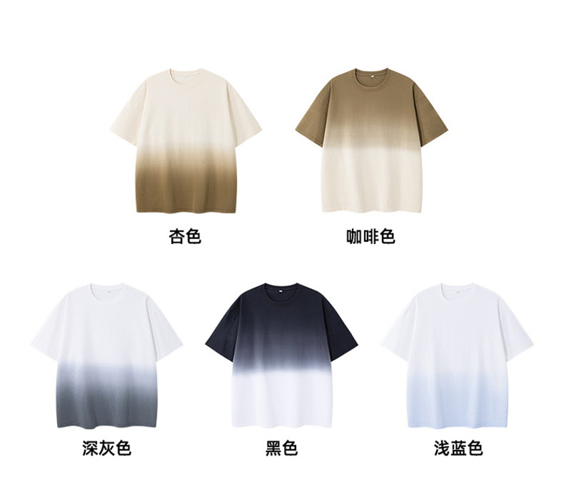 渐变色 纯棉美式T恤短袖男夏季新品宽松圆领落肩袖上衣情侣装大码