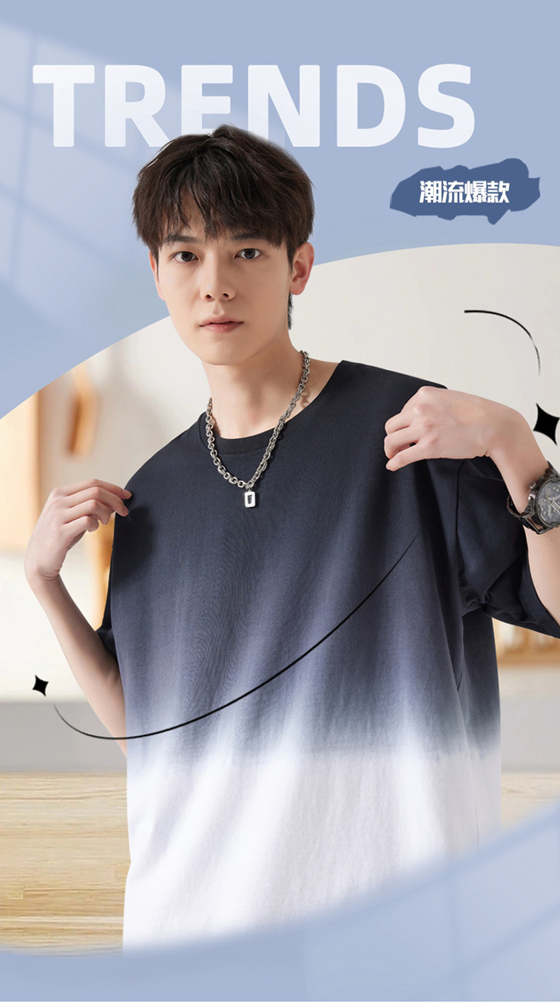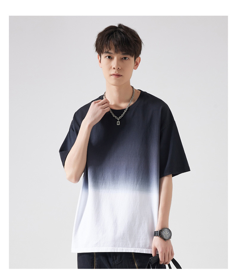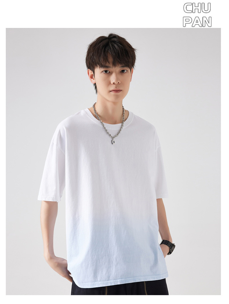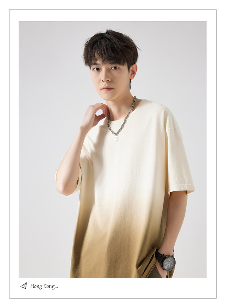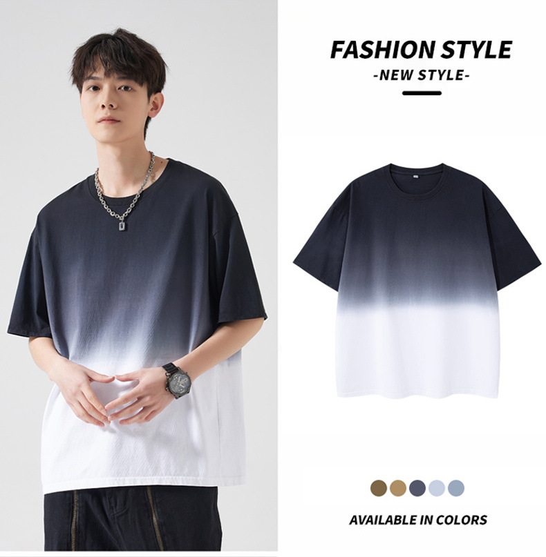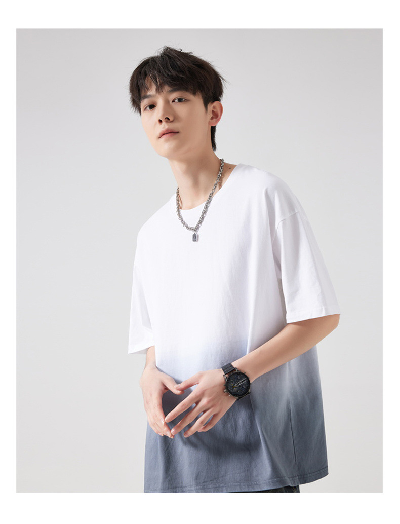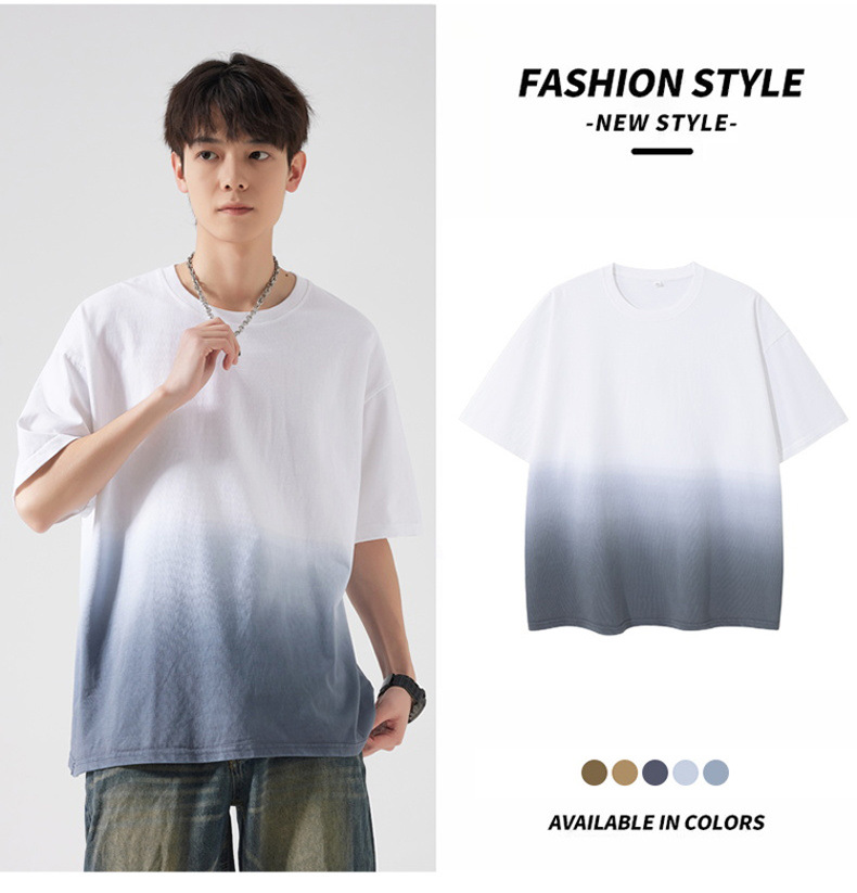 渐变色 纯棉美式T恤短袖男夏季新品宽松圆领落肩袖上衣情侣装大码
