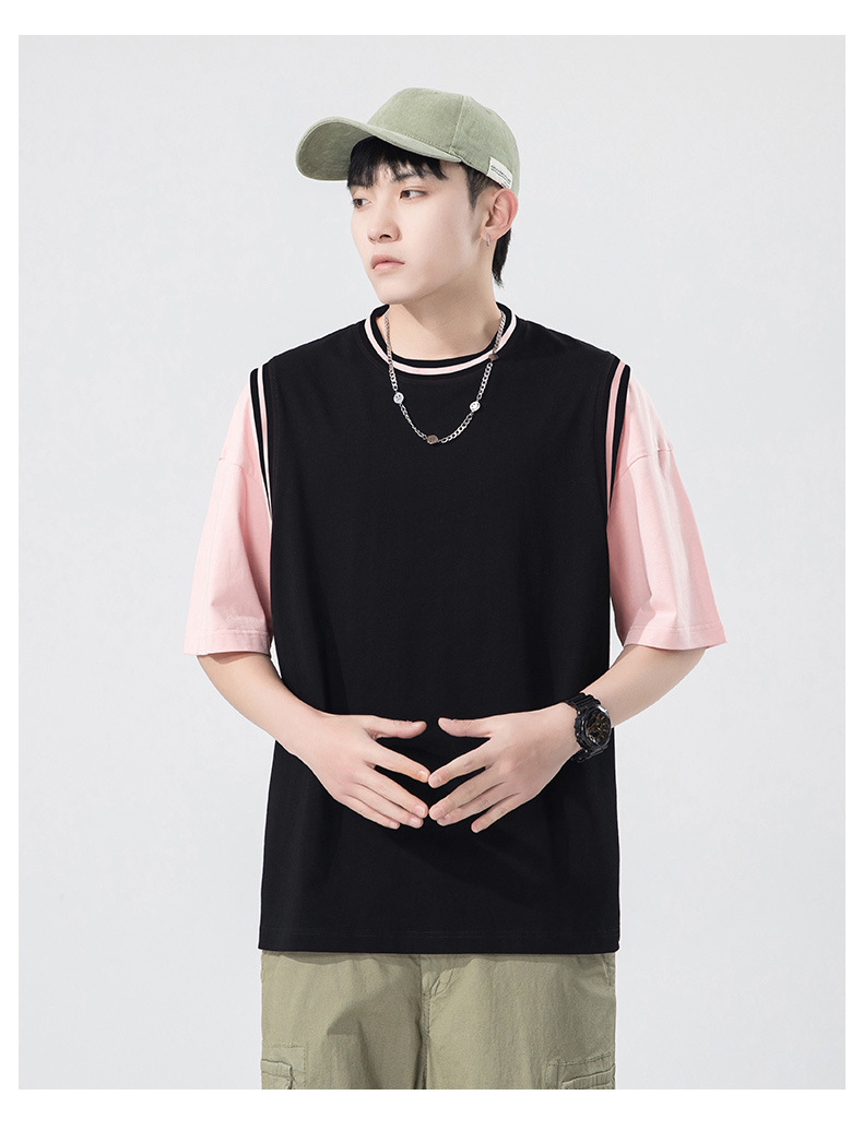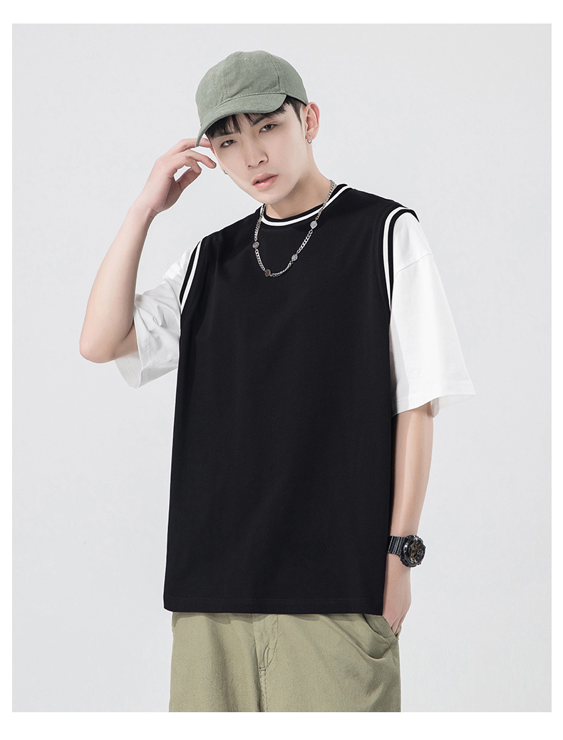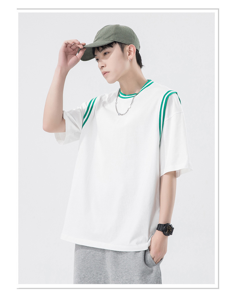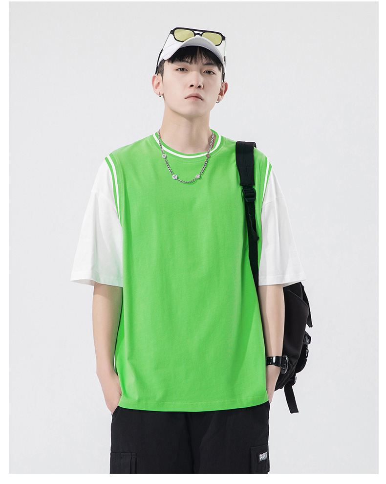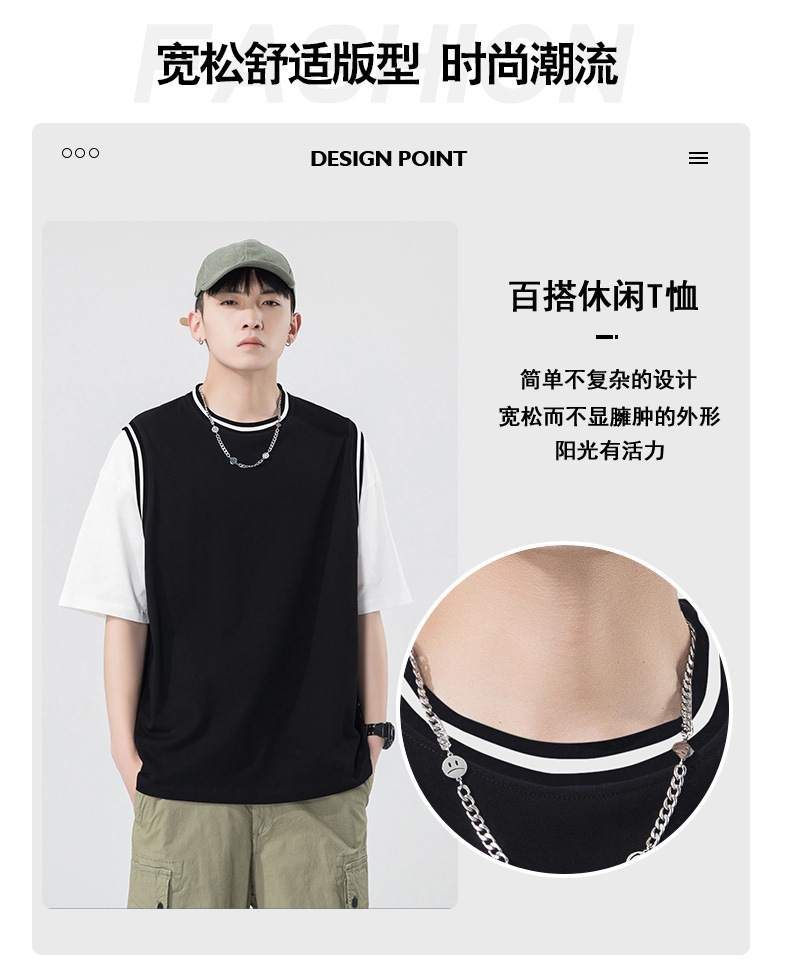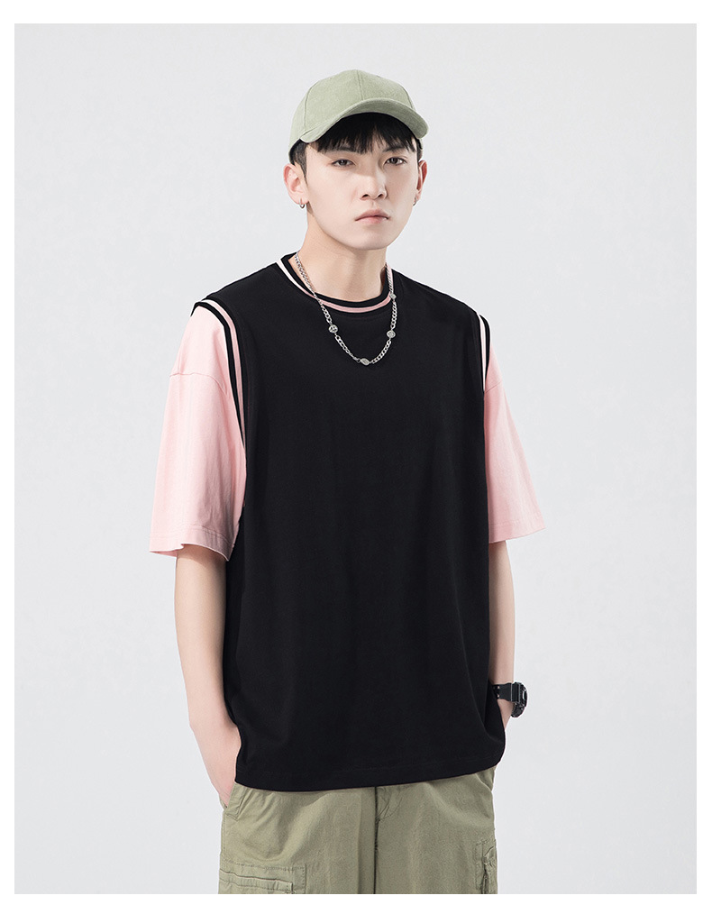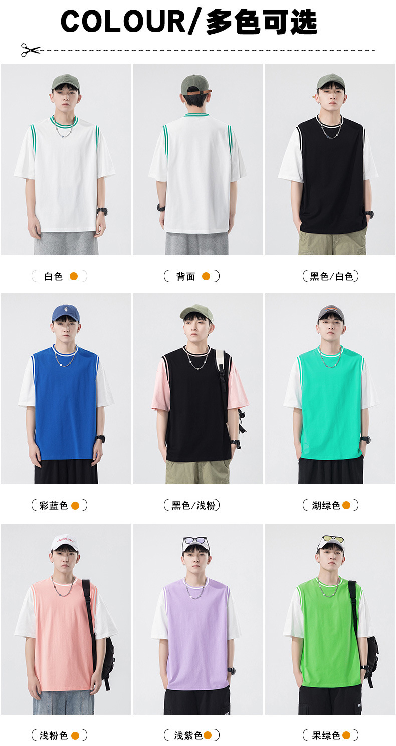 夏季潮牌男装ins韩版重磅短袖T恤男士纯棉假两件半袖打底衫情侣装