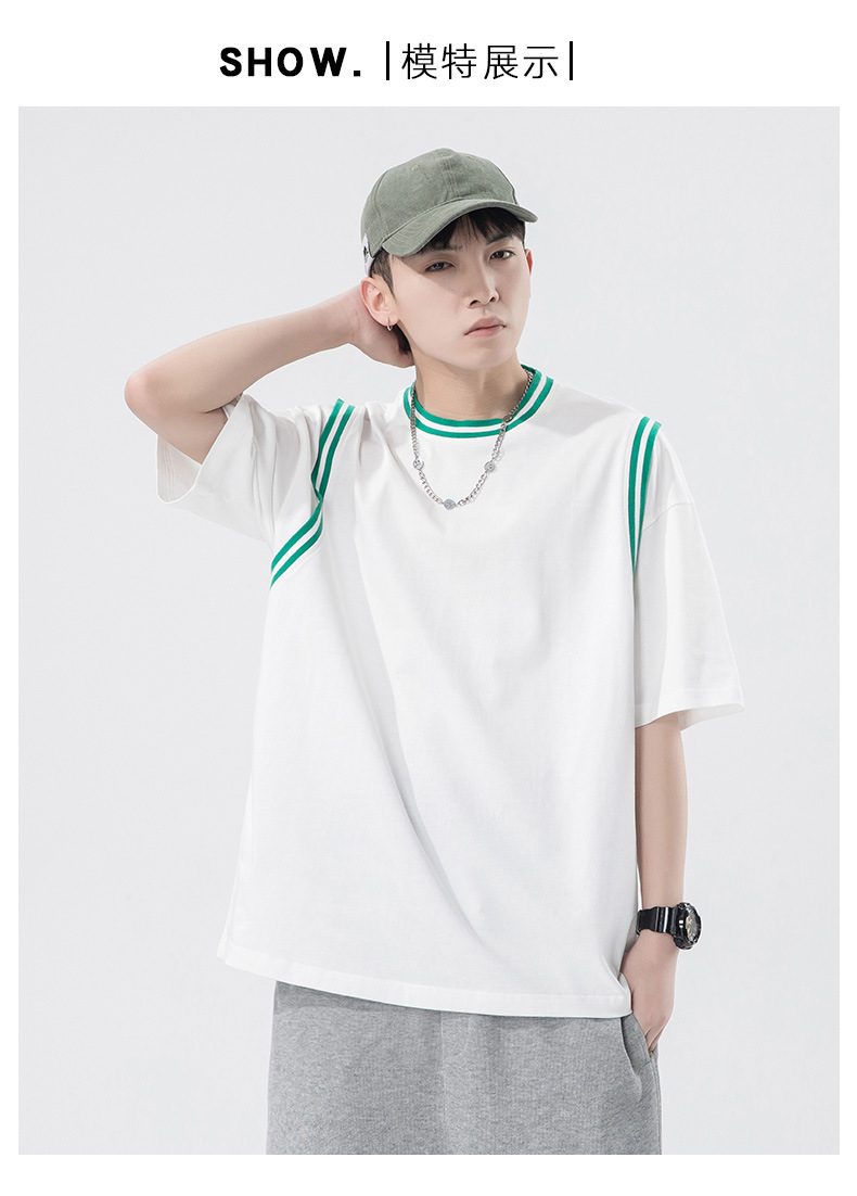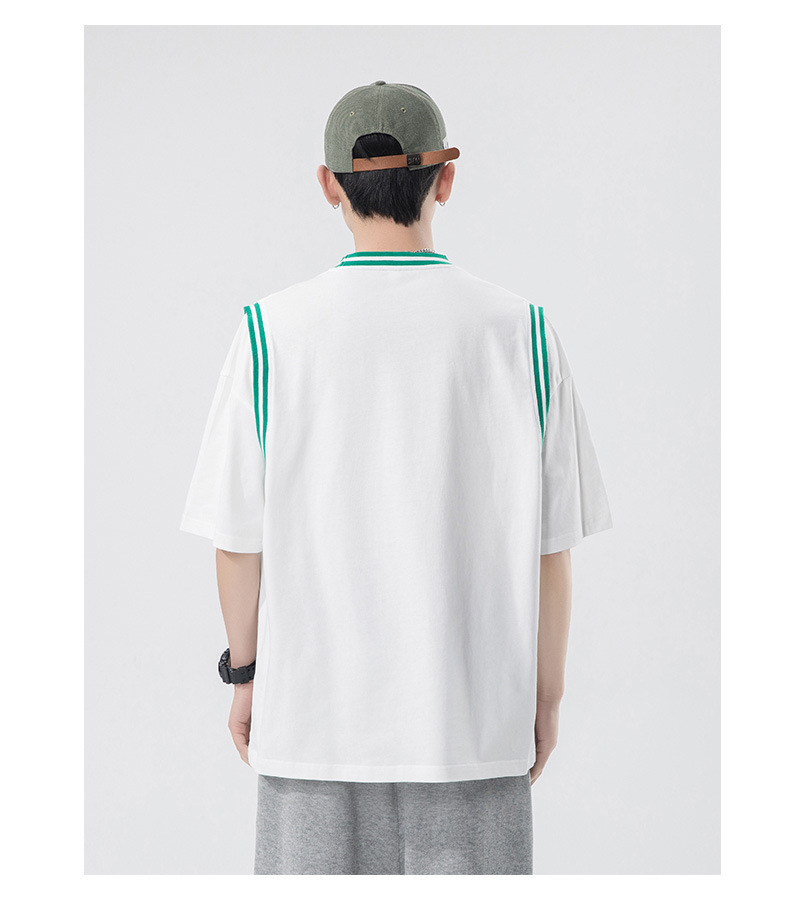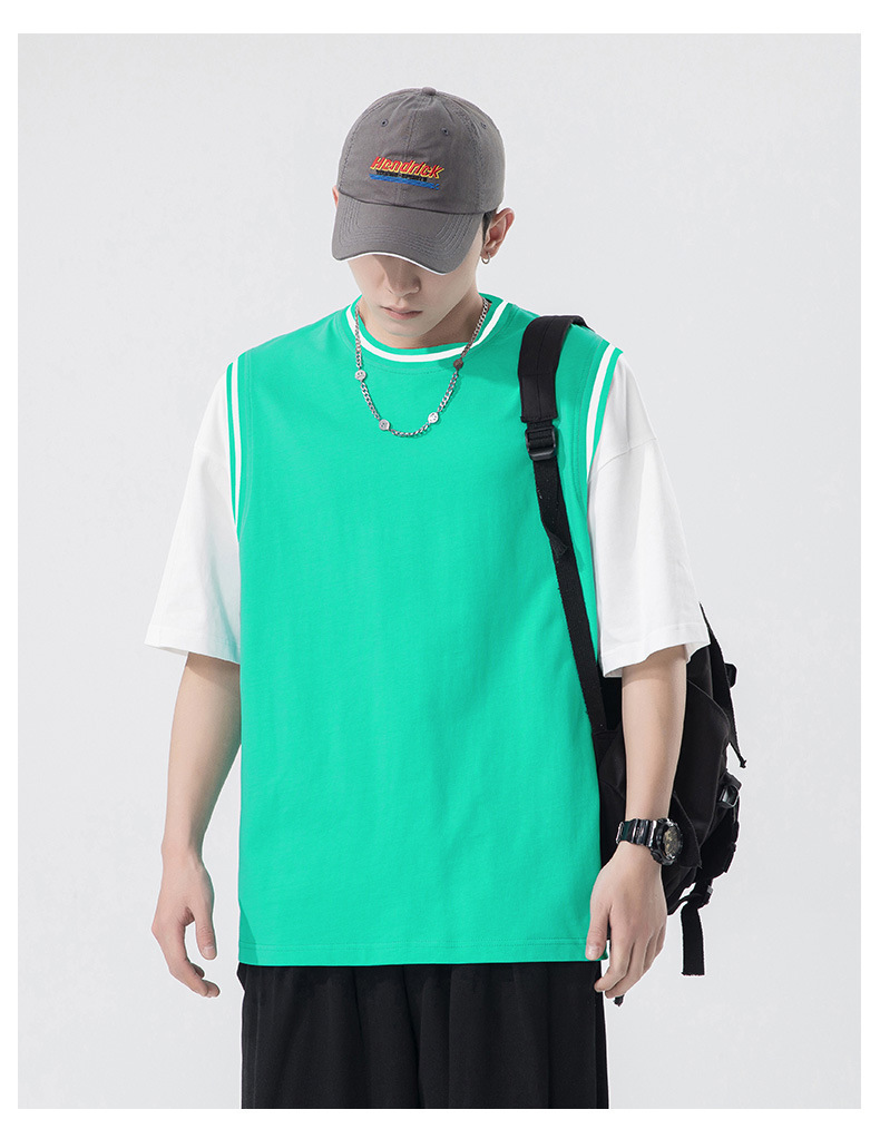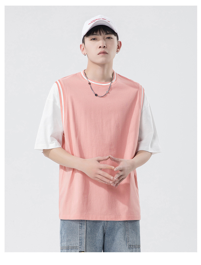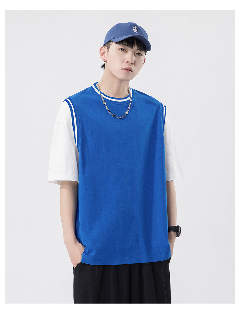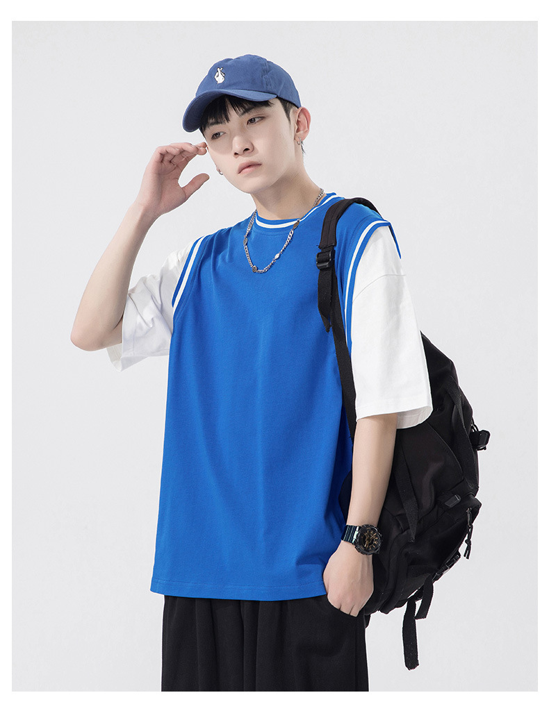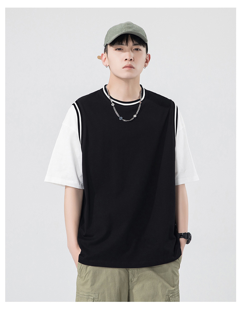 夏季潮牌男装ins韩版重磅短袖T恤男士纯棉假两件半袖打底衫情侣装