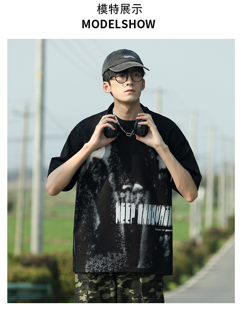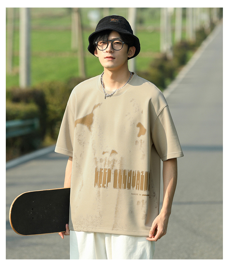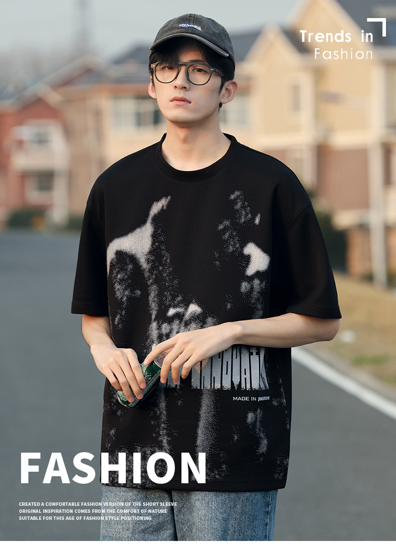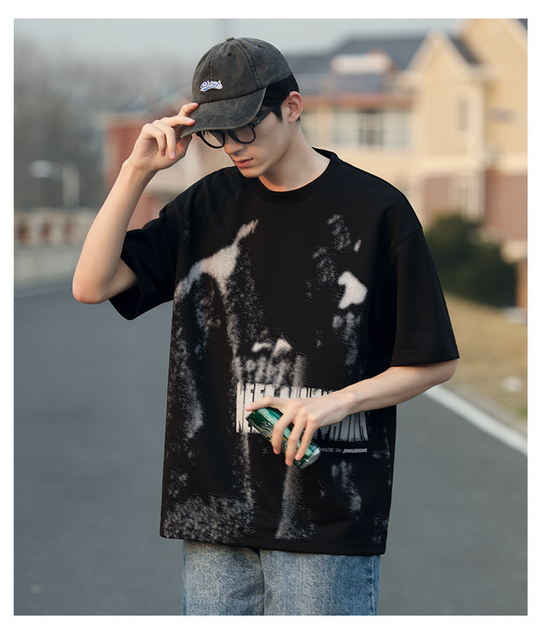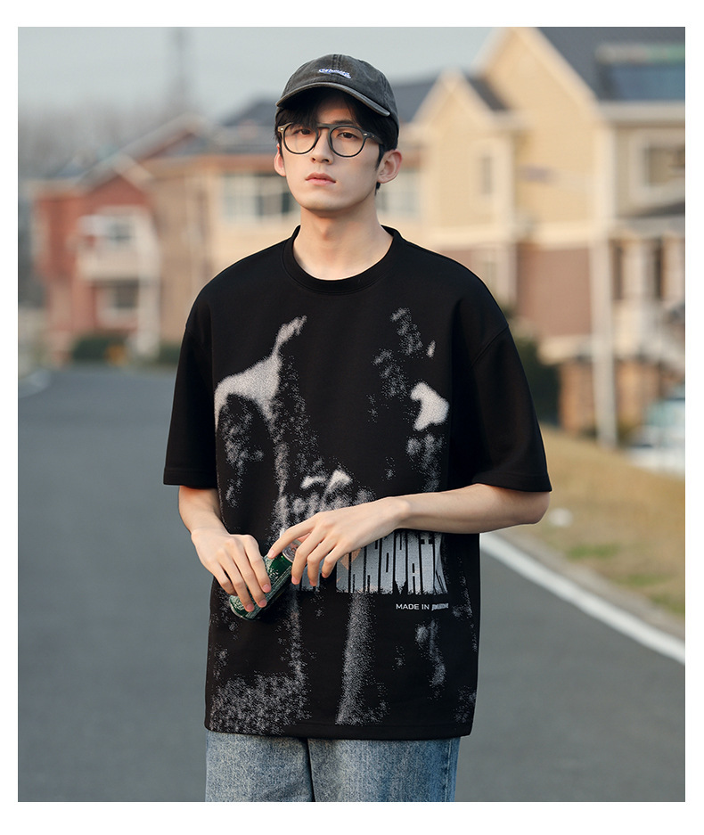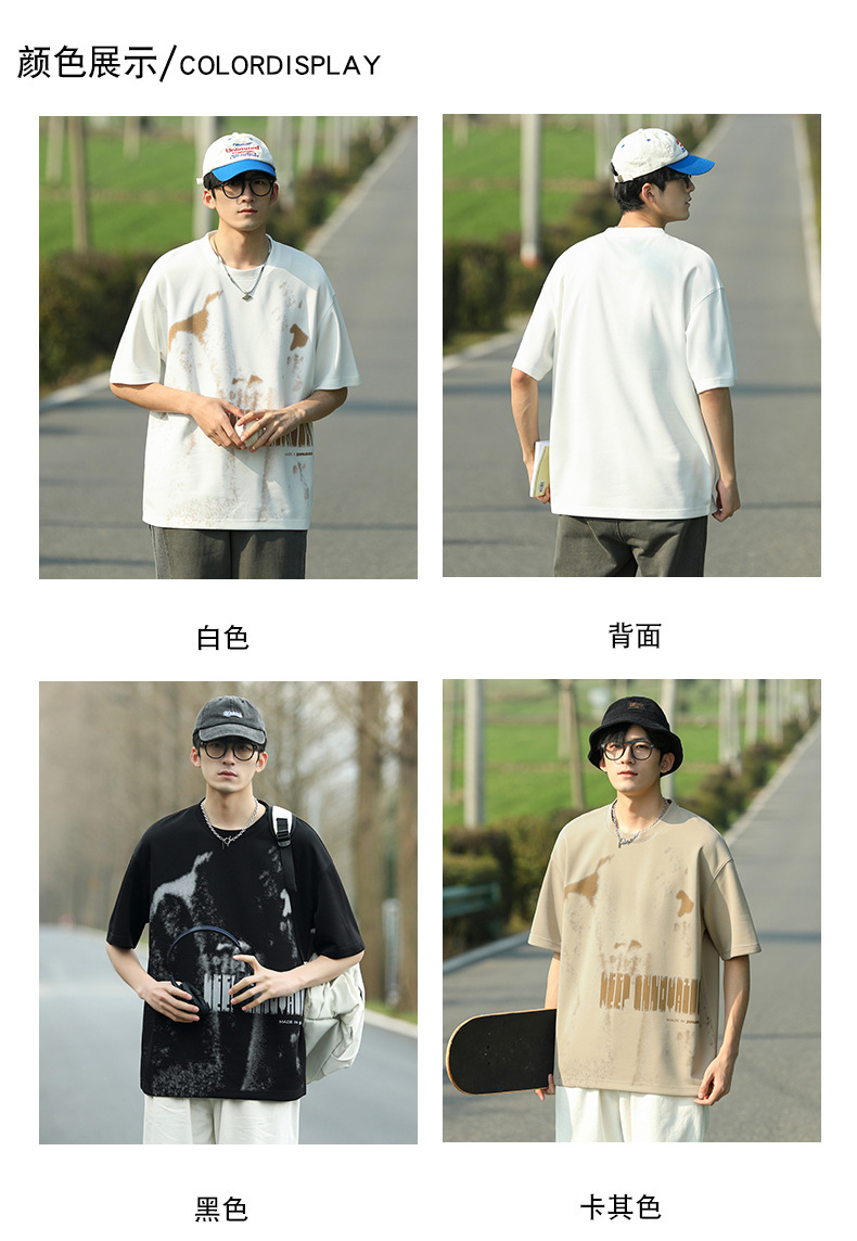 夏季新品210g短袖T恤男潮牌印花落肩宽松版型半袖打底衫代发男装