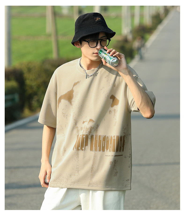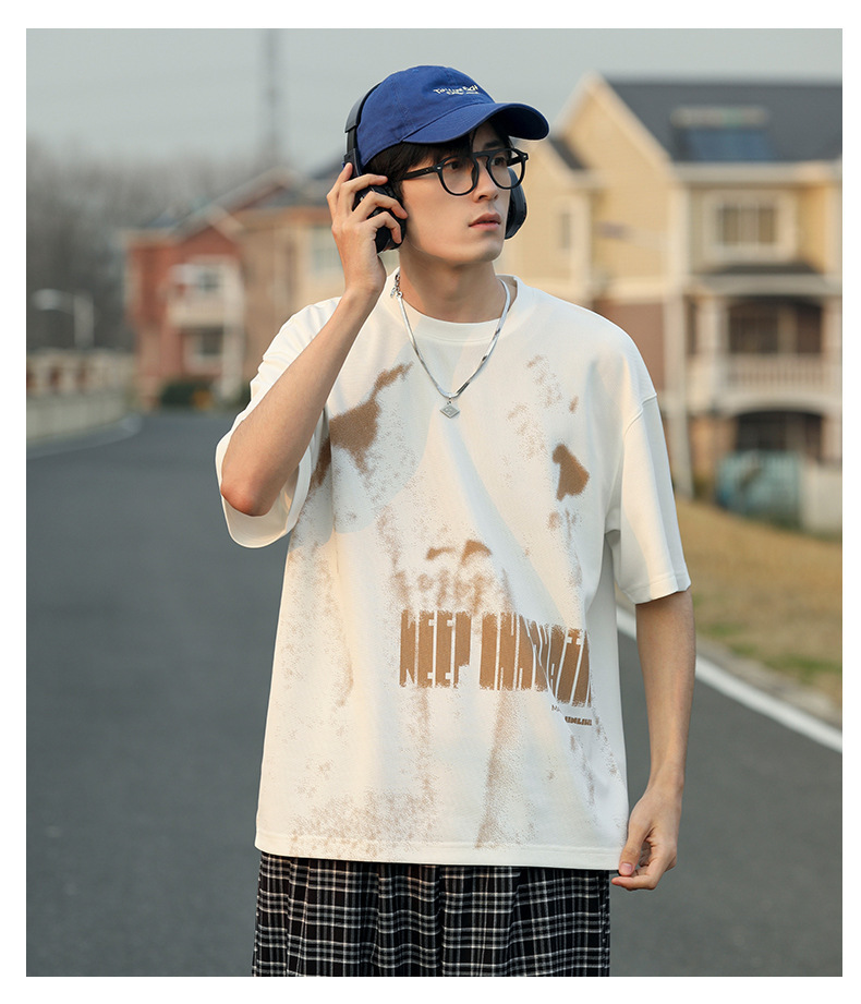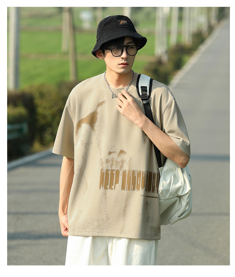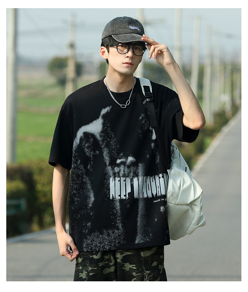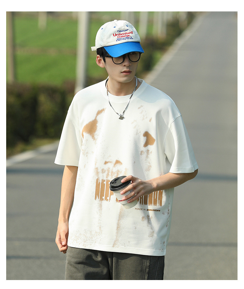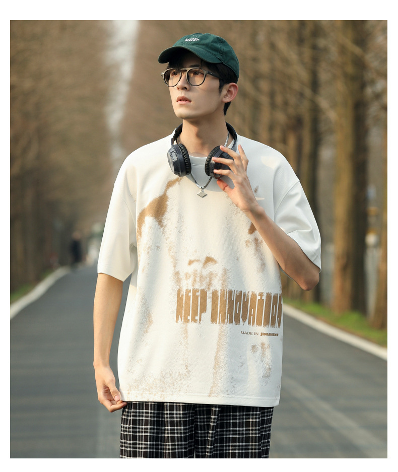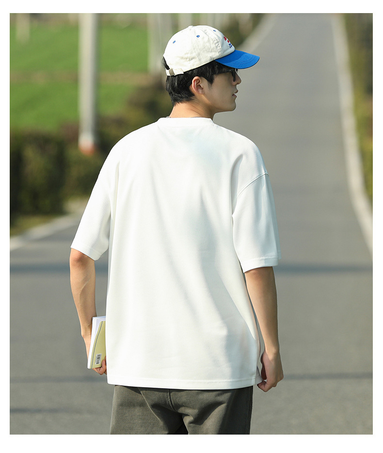 夏季新品210g短袖T恤男潮牌印花落肩宽松版型半袖打底衫代发男装