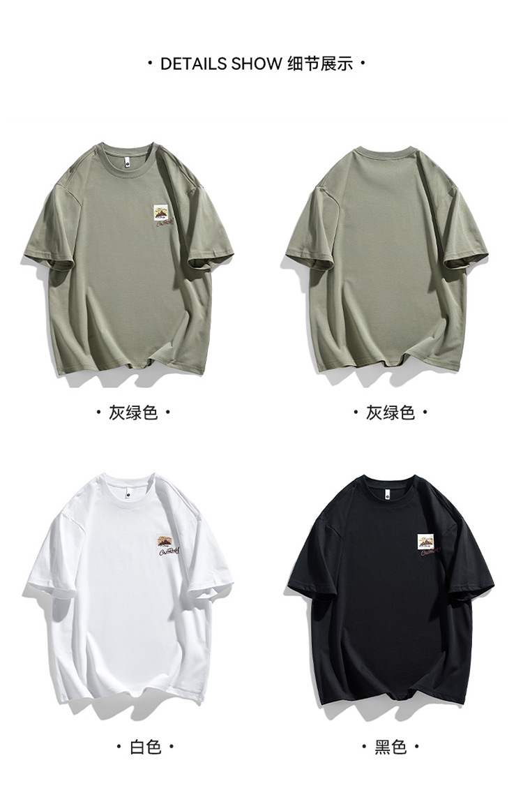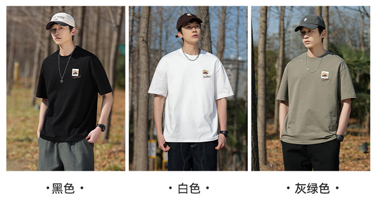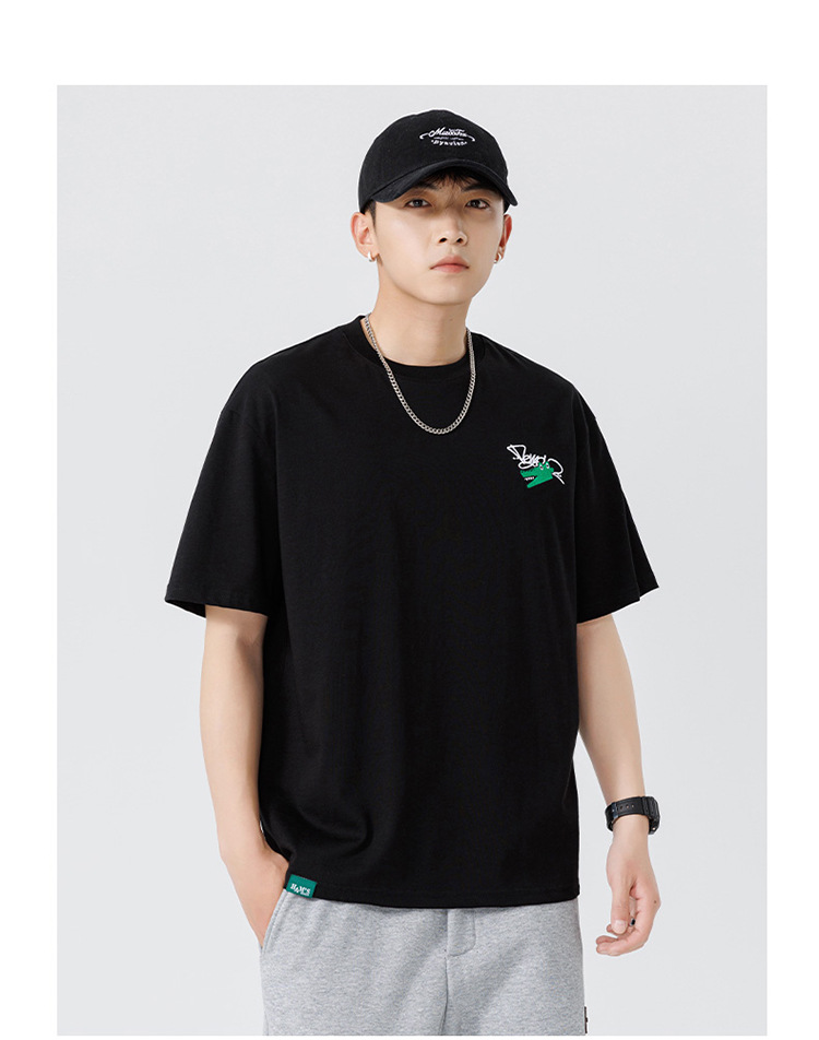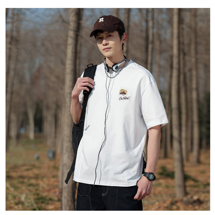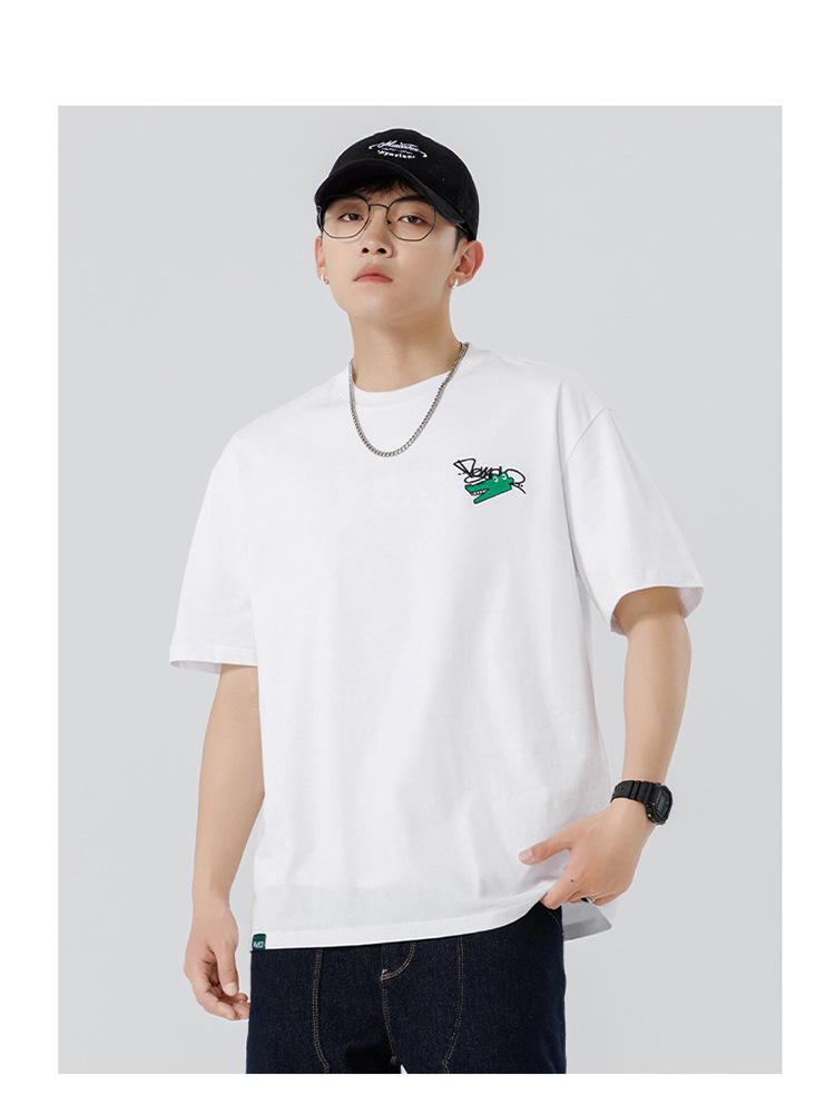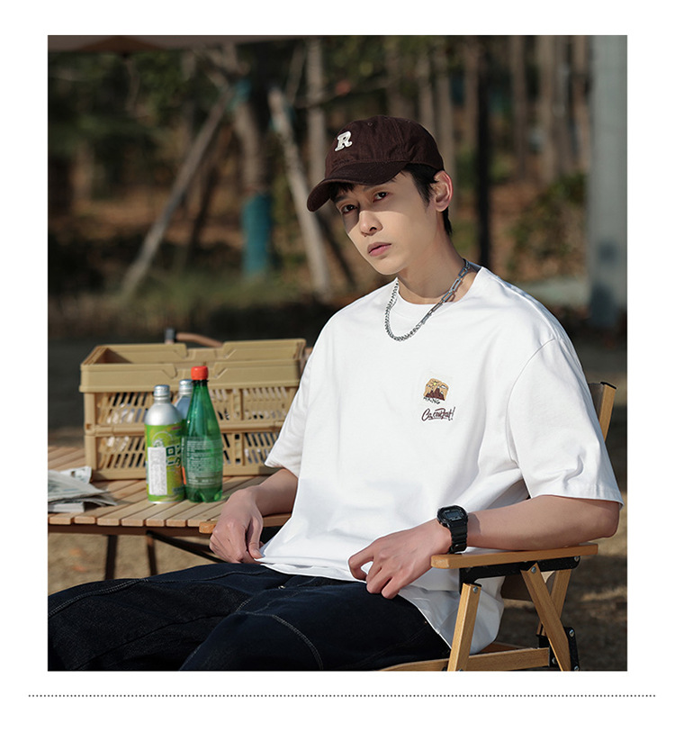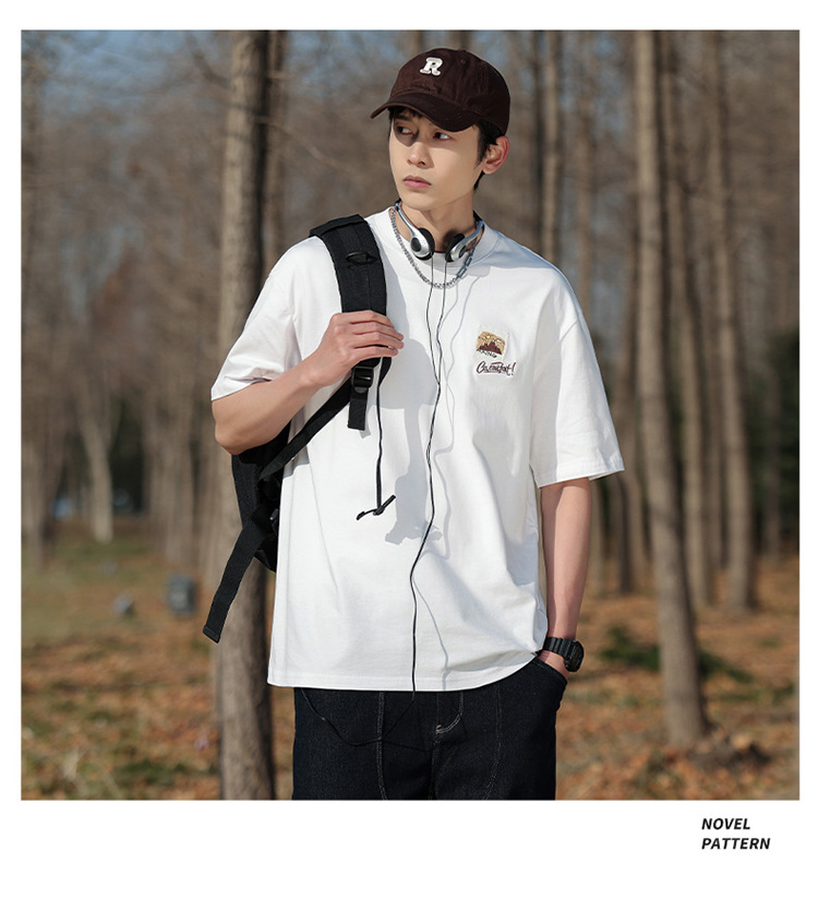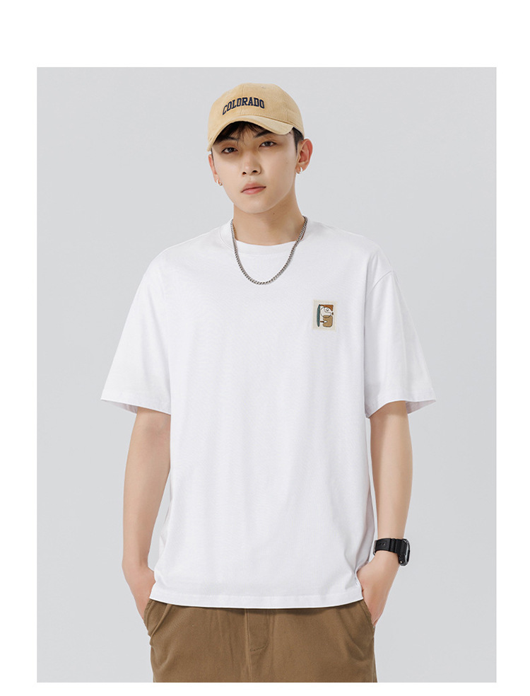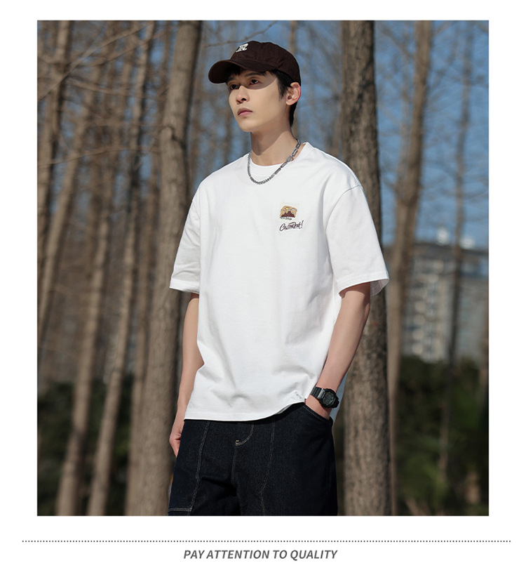 白色纯棉短袖T恤男夏季美式休闲宽松上衣服男士潮流刺绣圆领体恤T