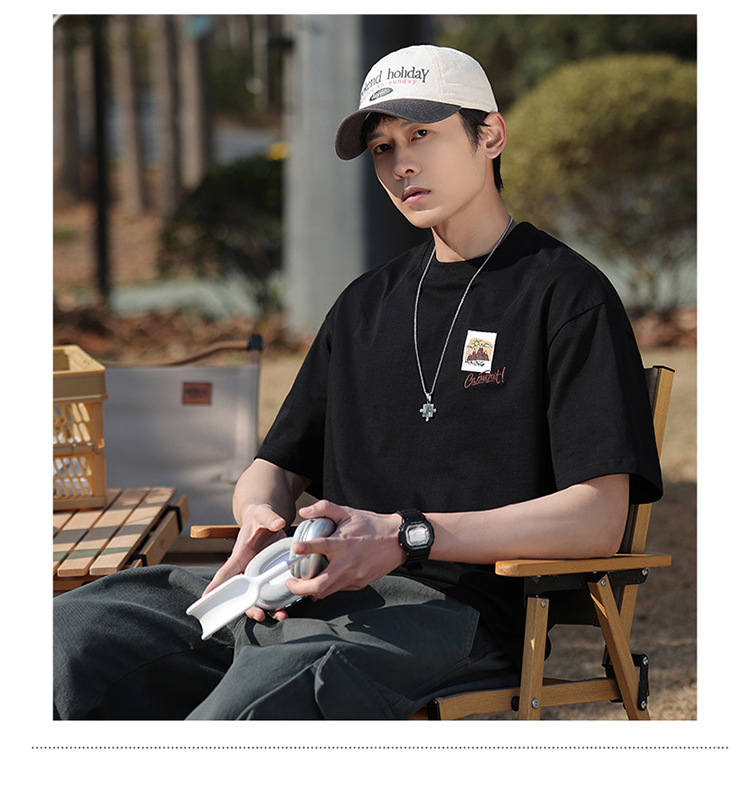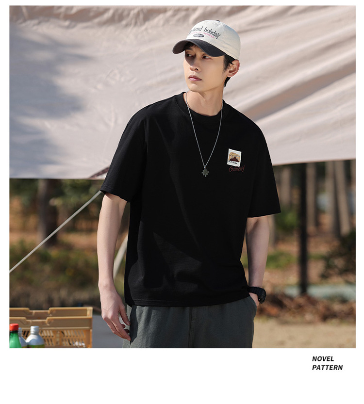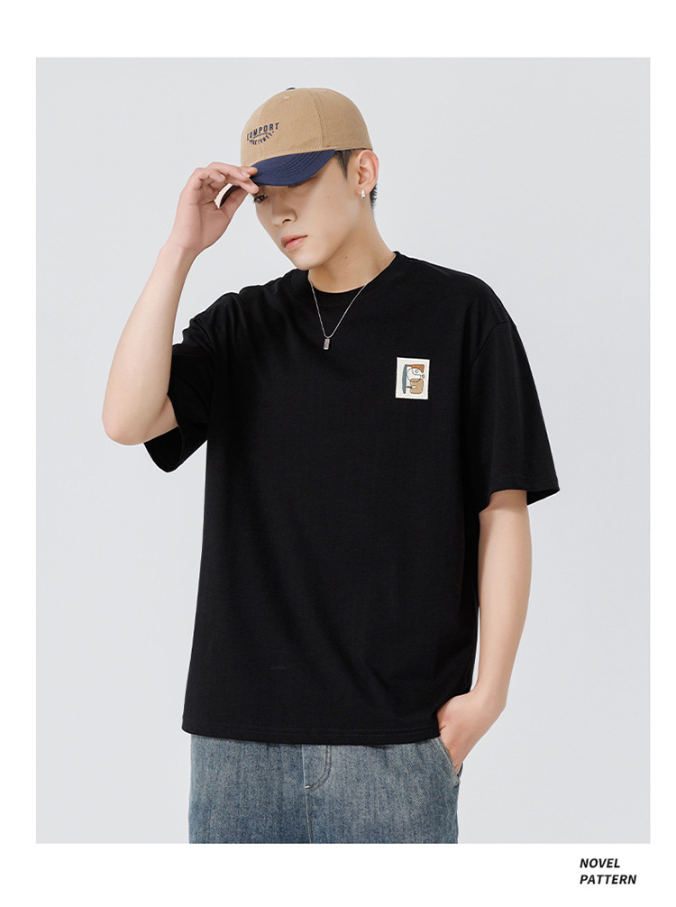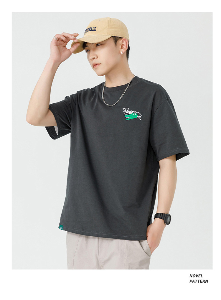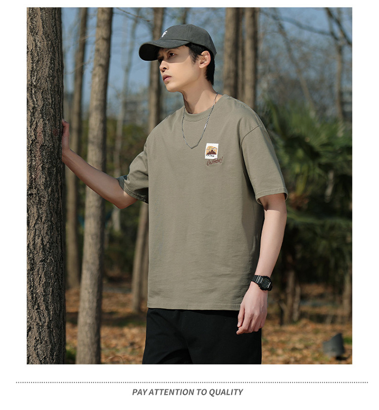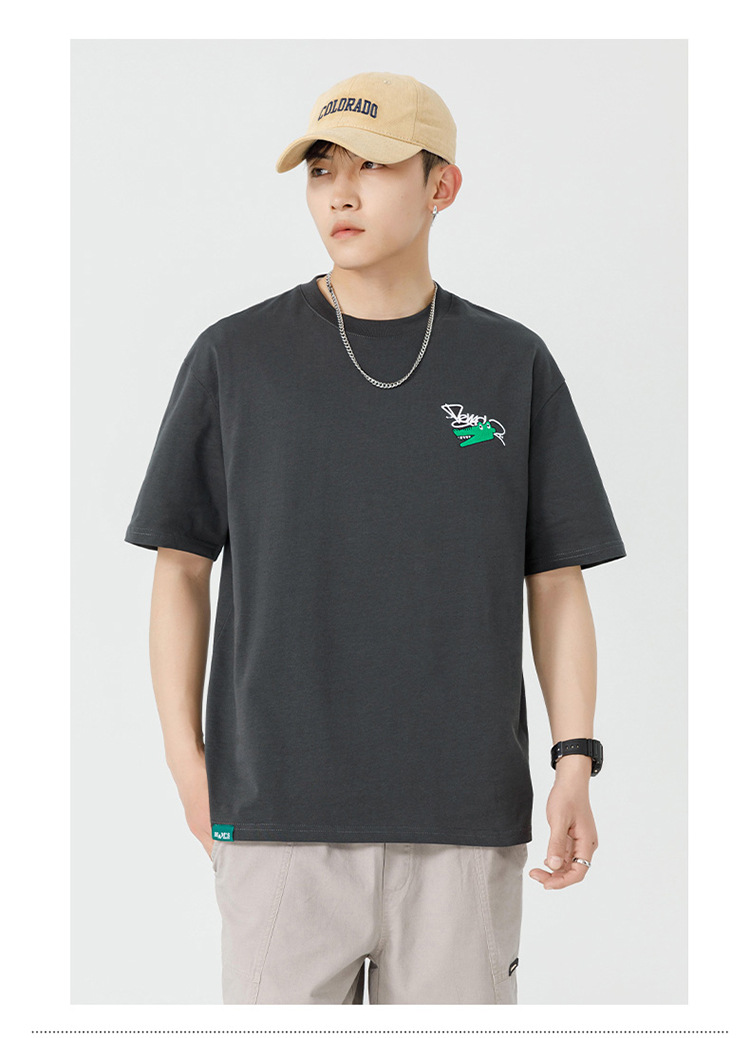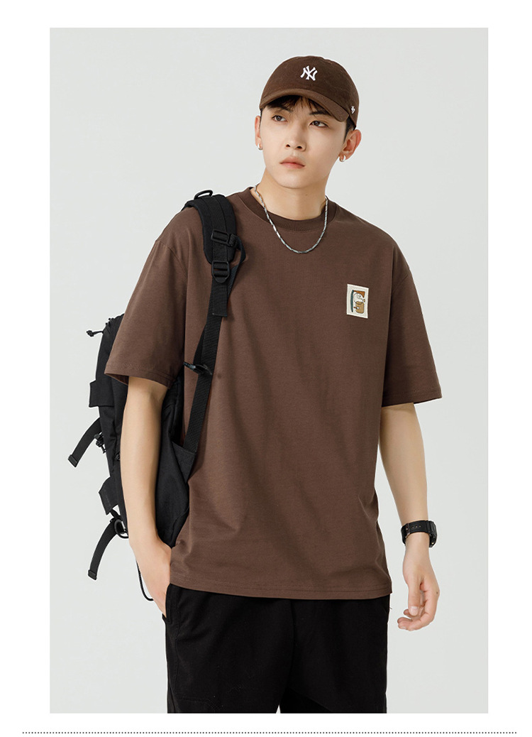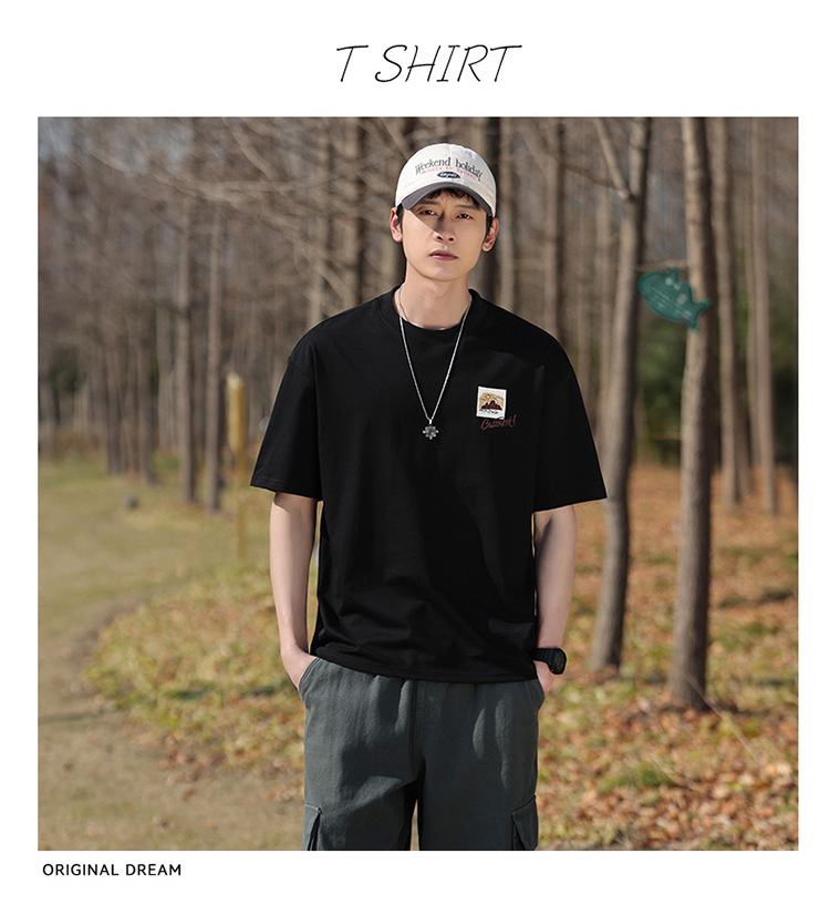 白色纯棉短袖T恤男夏季美式休闲宽松上衣服男士潮流刺绣圆领体恤T
