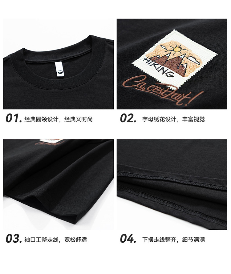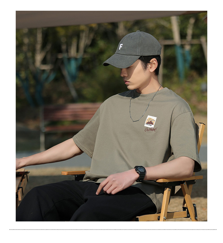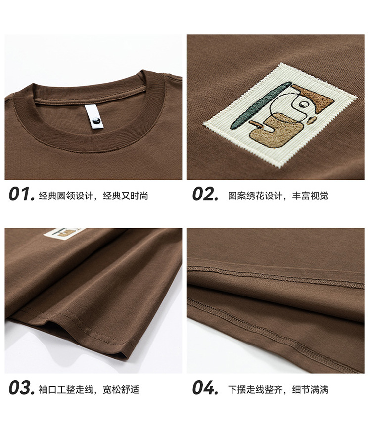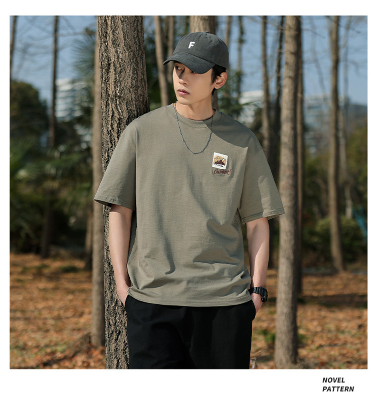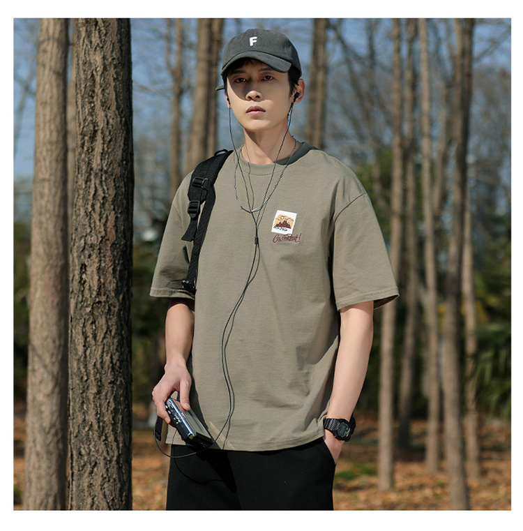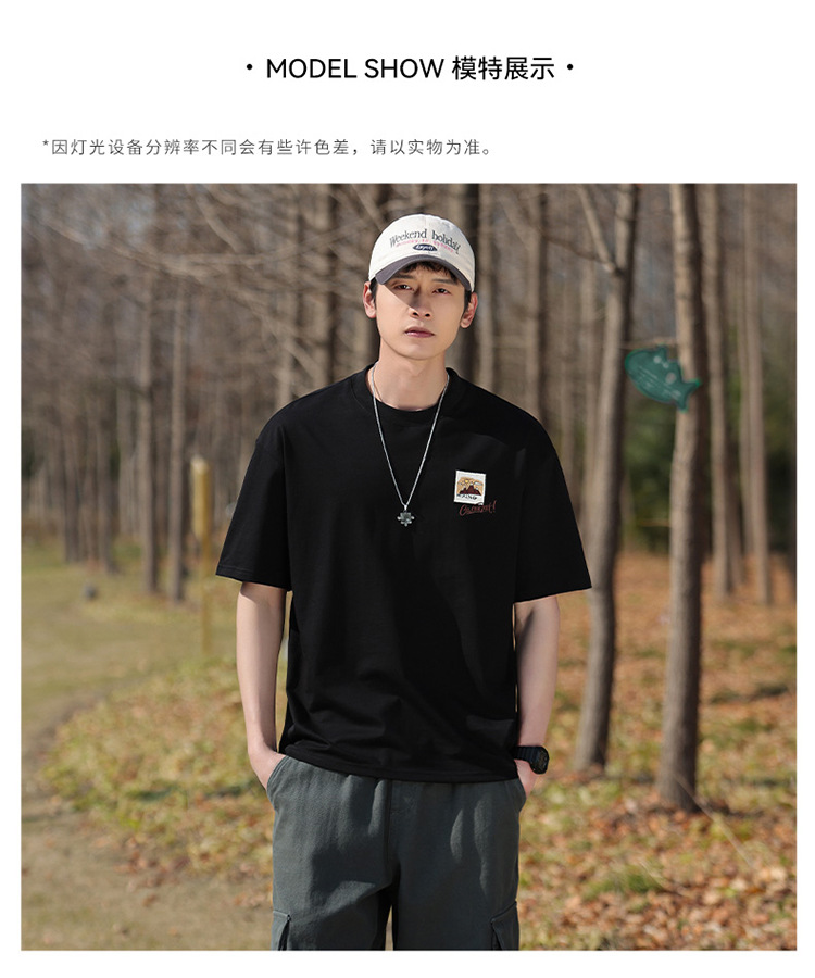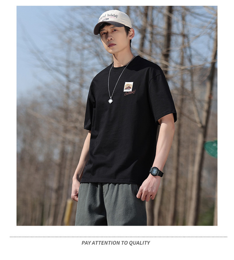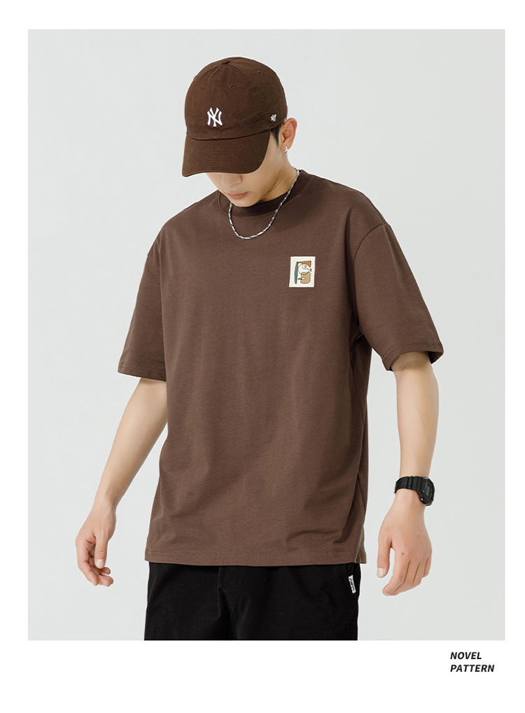 白色纯棉短袖T恤男夏季美式休闲宽松上衣服男士潮流刺绣圆领体恤T