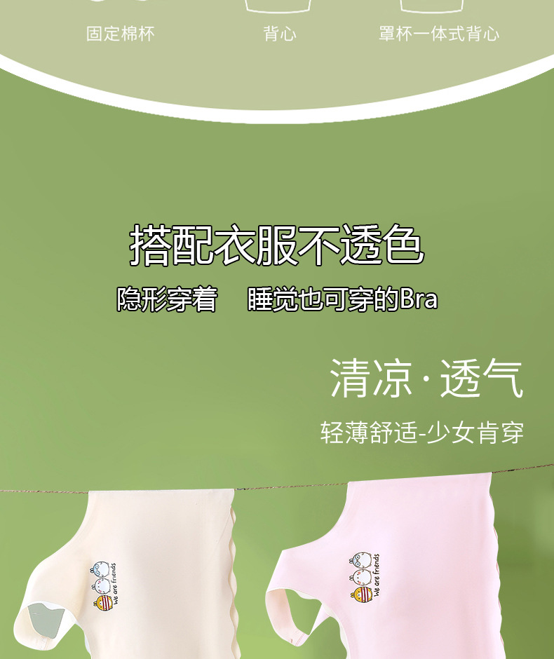 女童内衣发育期夏季薄款小学生背心儿童初中学生胸罩无痕少女文胸