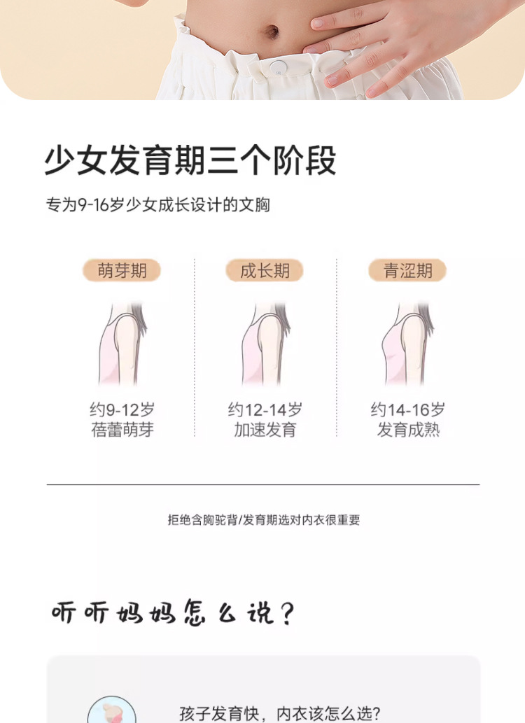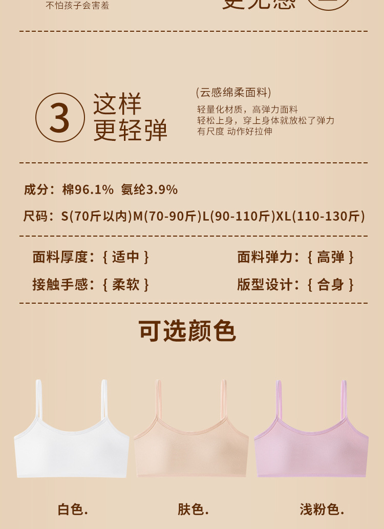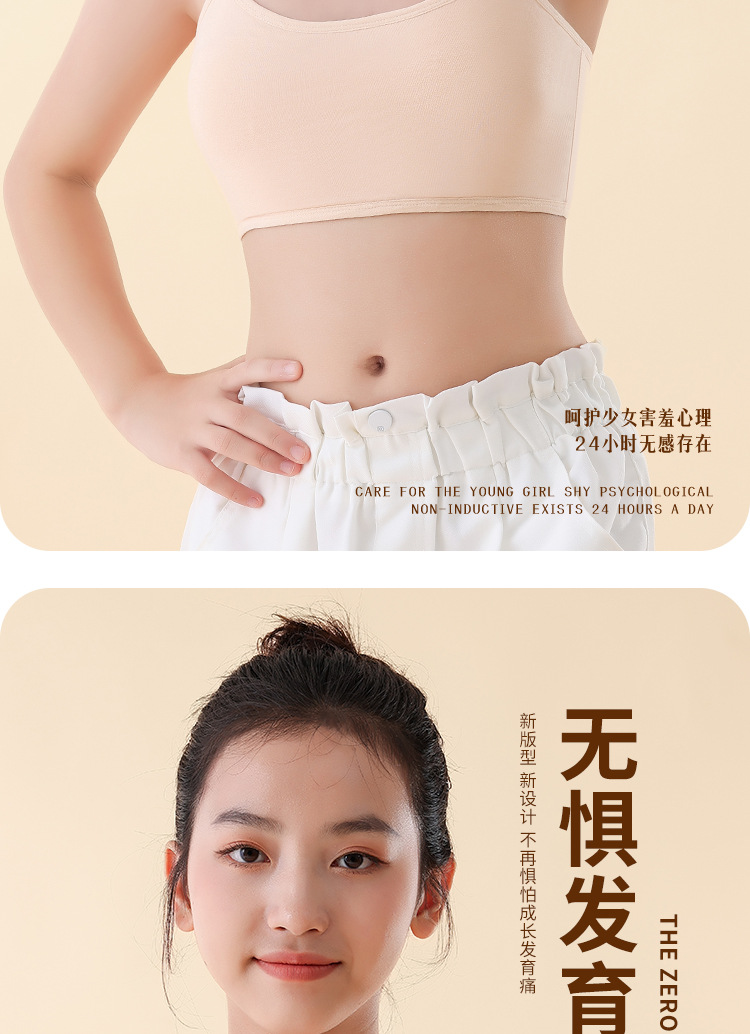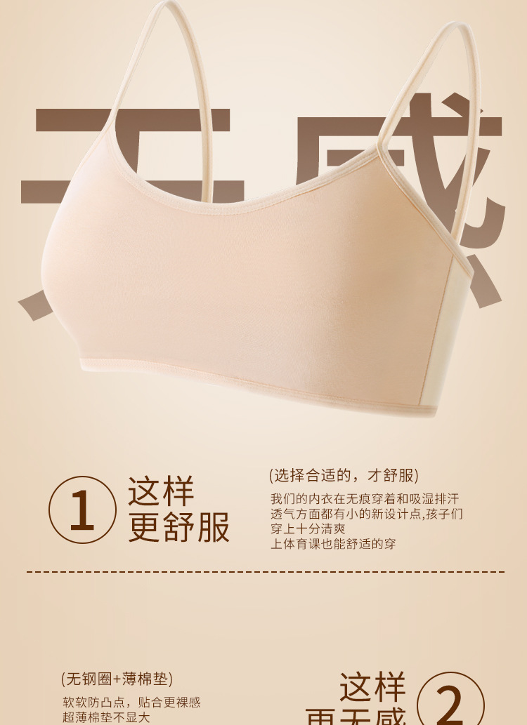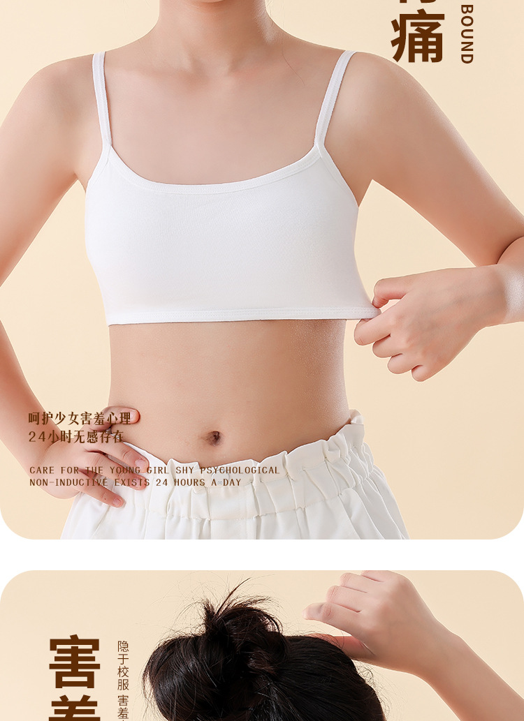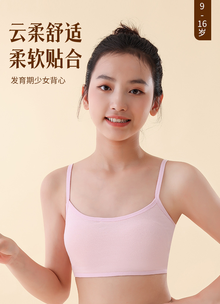 少女纯棉发育期背心防凸点固定杯吊带学生内衣女童初中生女孩文胸
