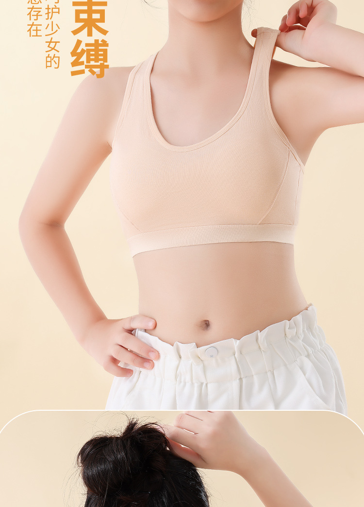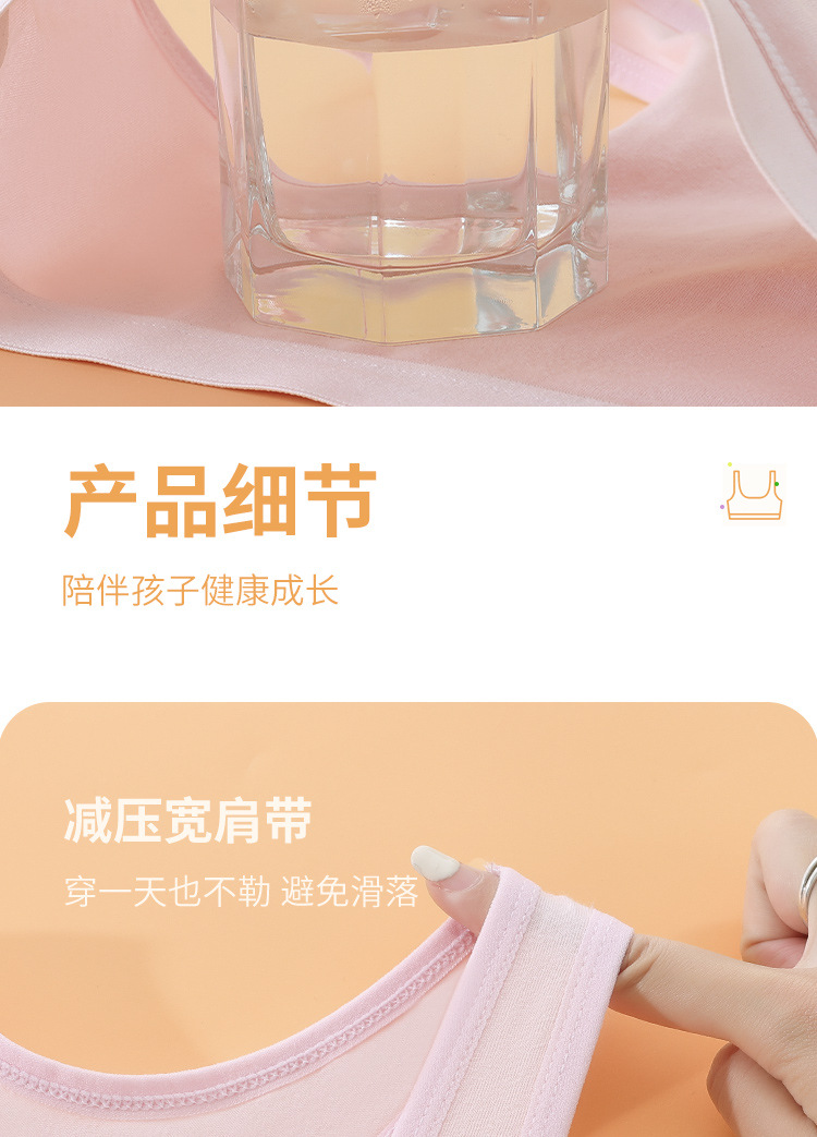 女童发育期纯棉少女文胸小学初中生固定杯运动防震背心无钢圈内衣