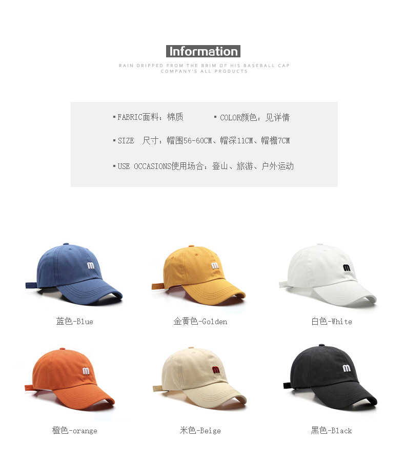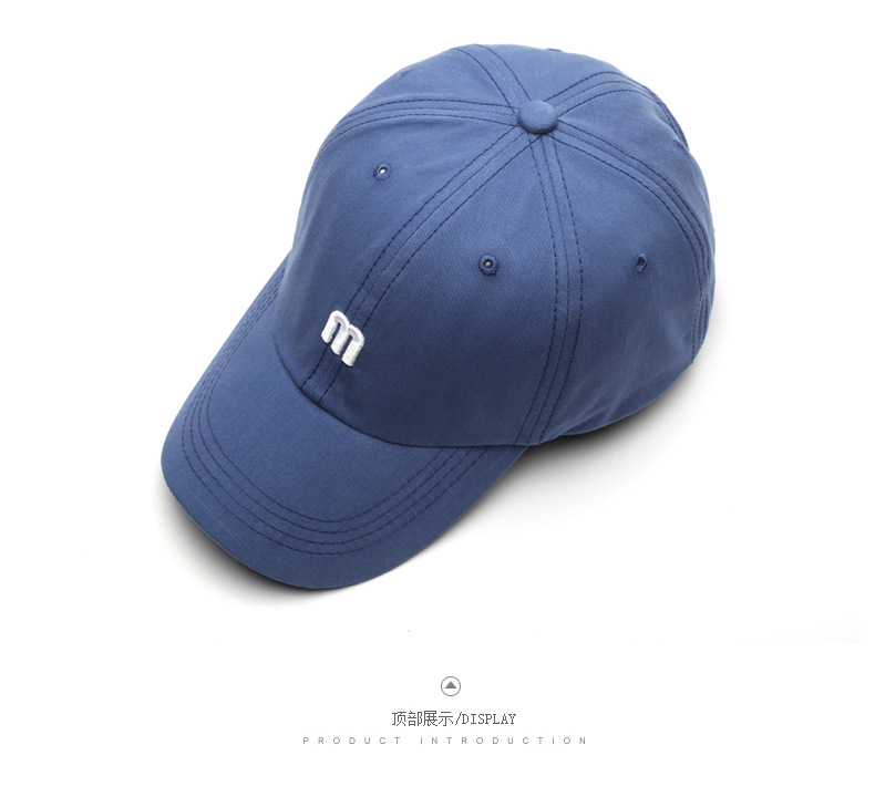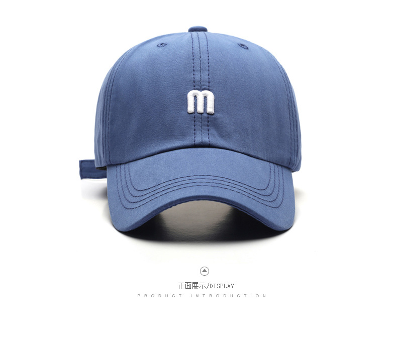 帽子 M字母刺绣鸭舌帽男百搭弯檐棉软顶遮阳帽时尚简约女