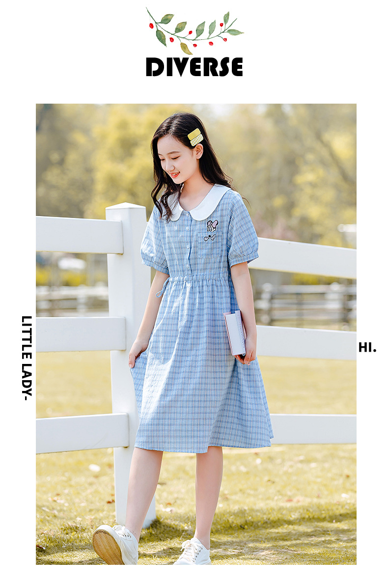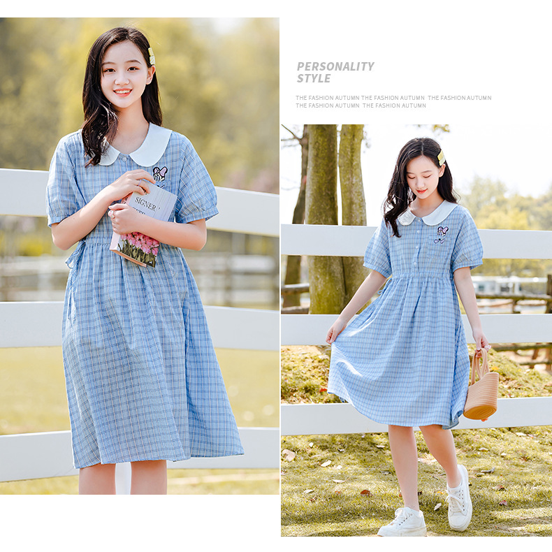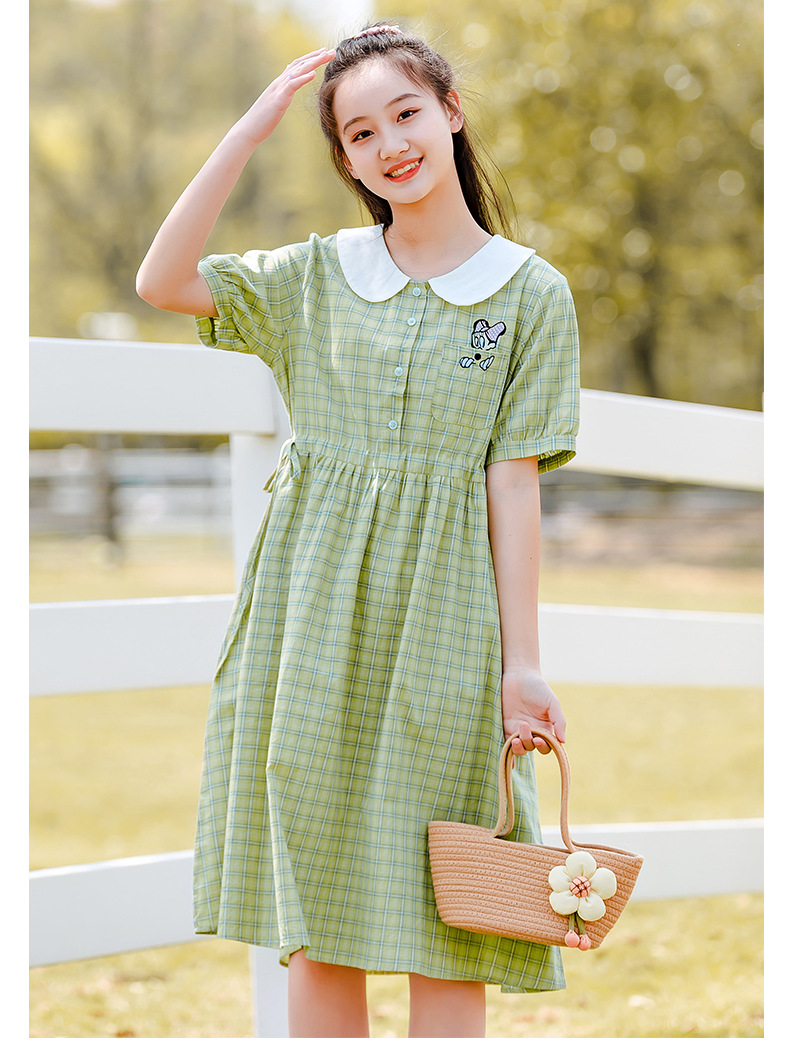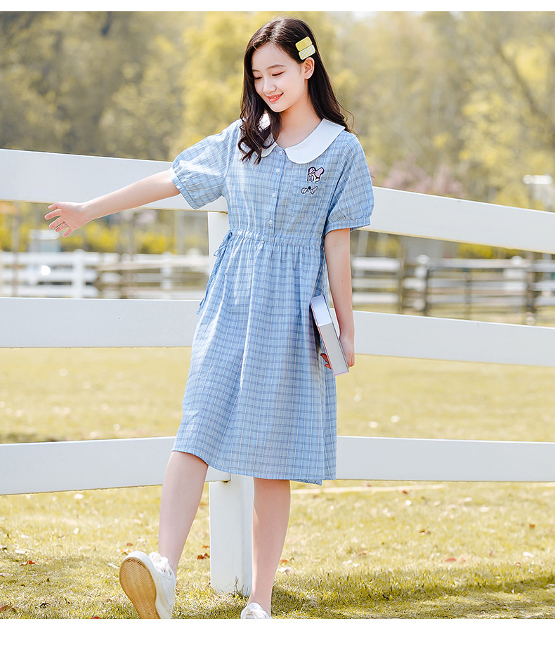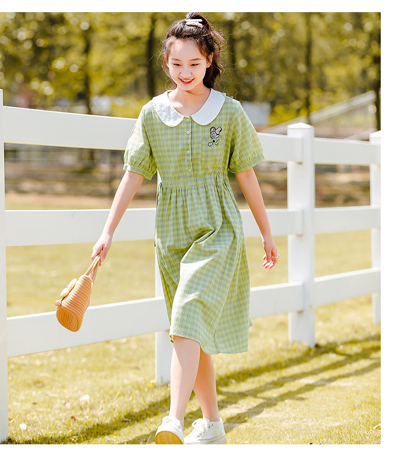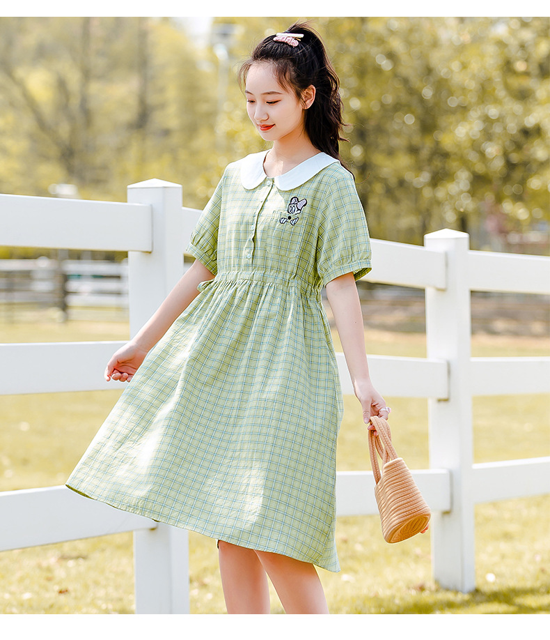 9937少女网格连衣裙夏季新款女童大童初中学生高中女生学院风裙子