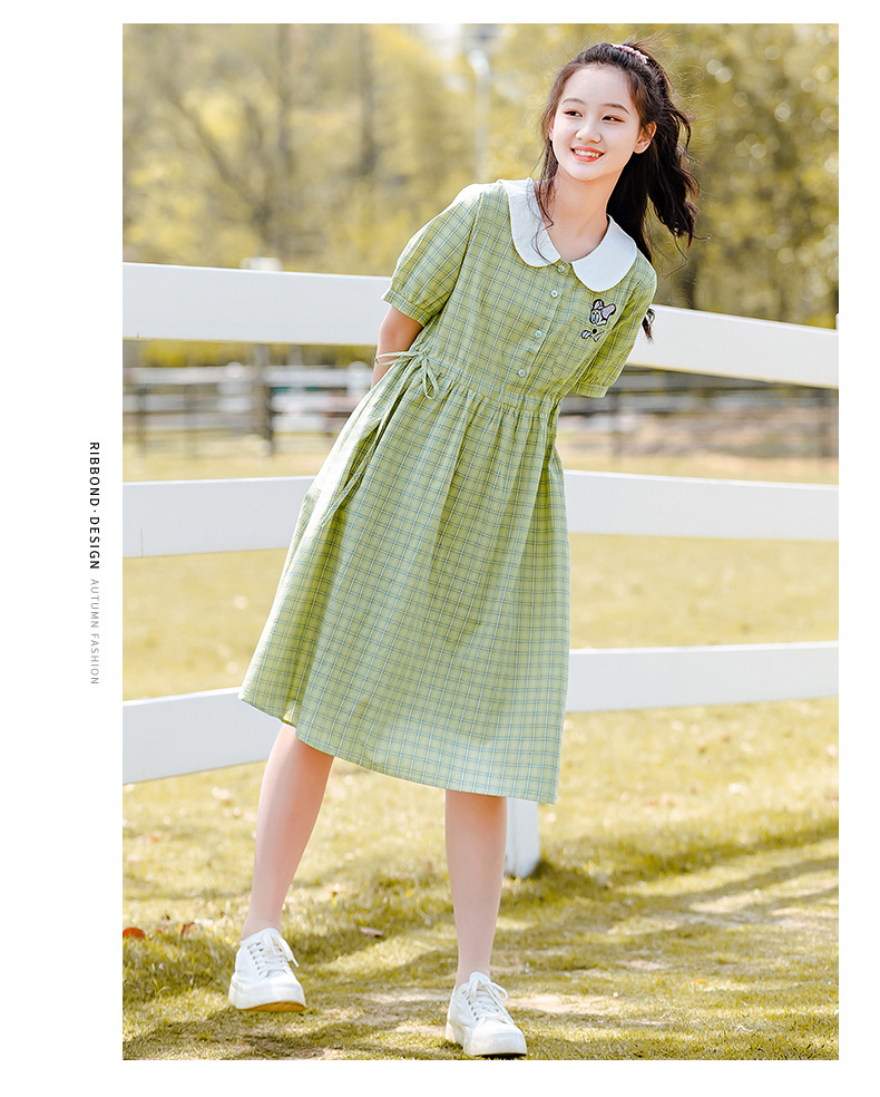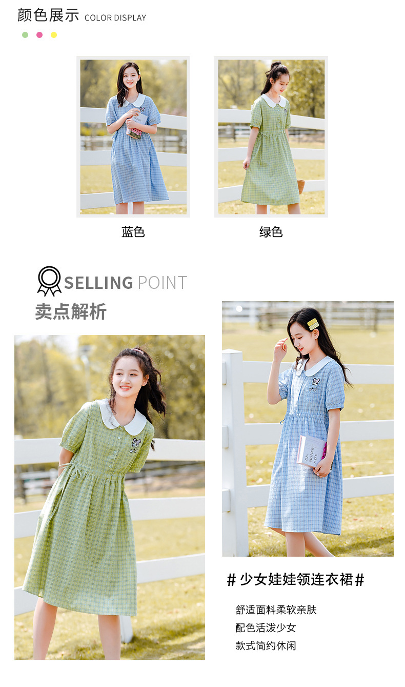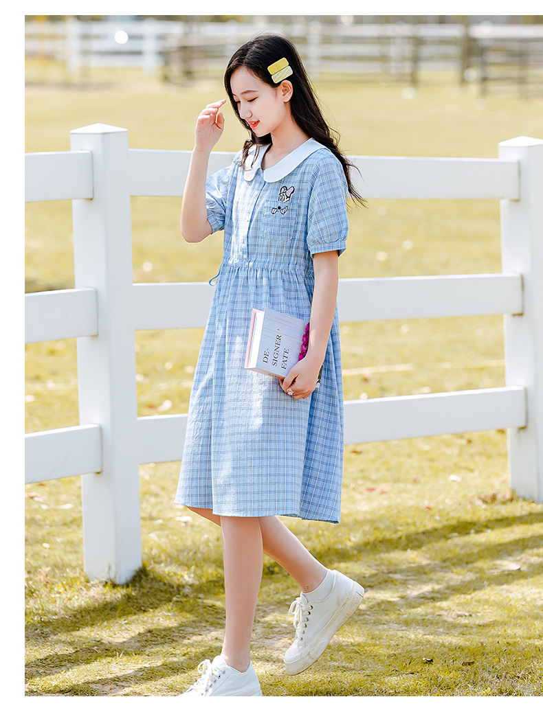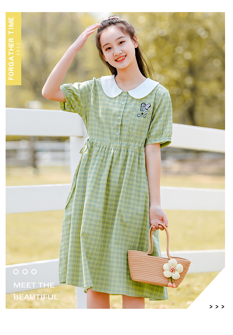 9937少女网格连衣裙夏季新款女童大童初中学生高中女生学院风裙子