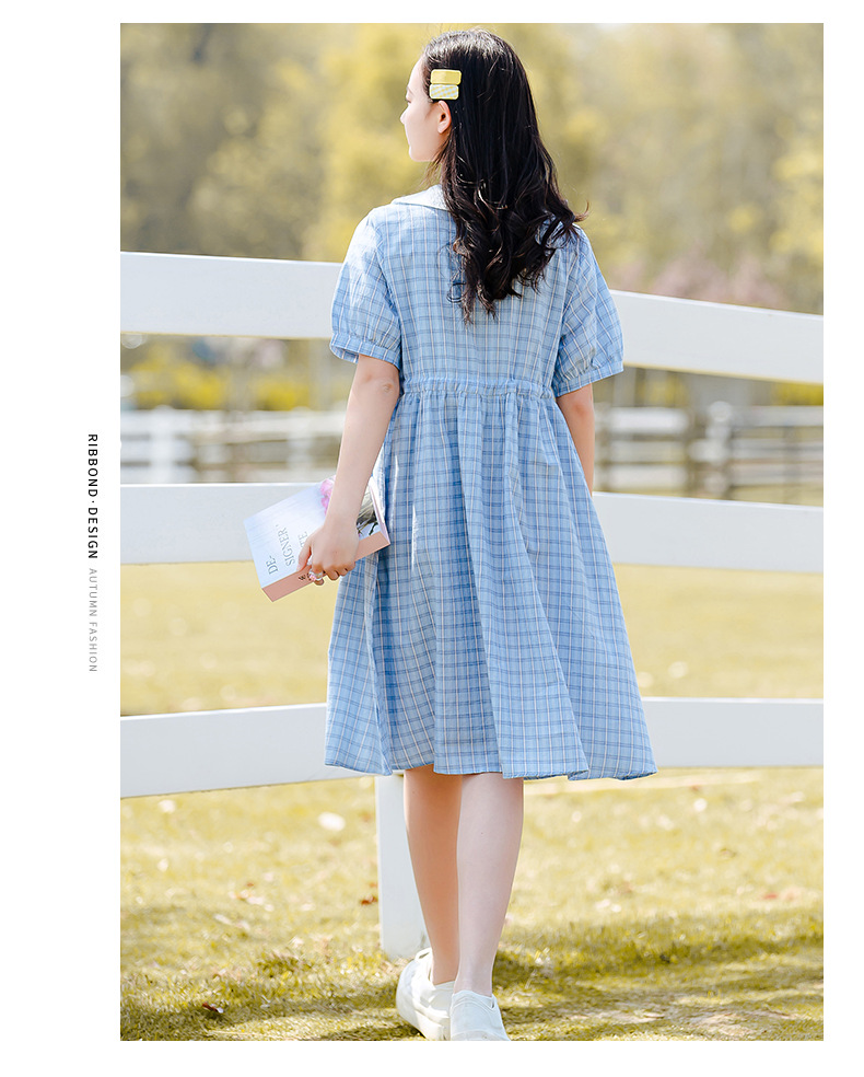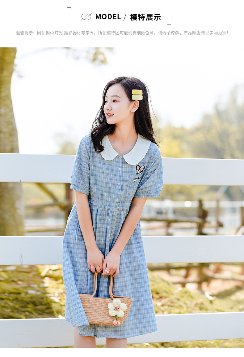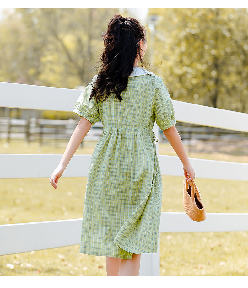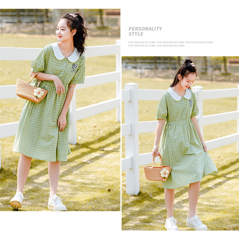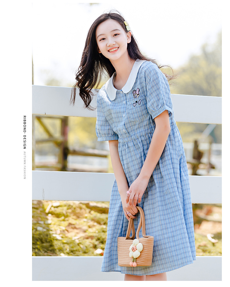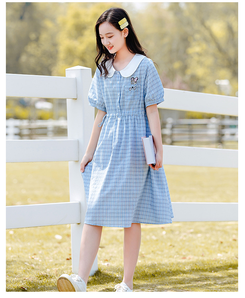 9937少女网格连衣裙夏季新款女童大童初中学生高中女生学院风裙子