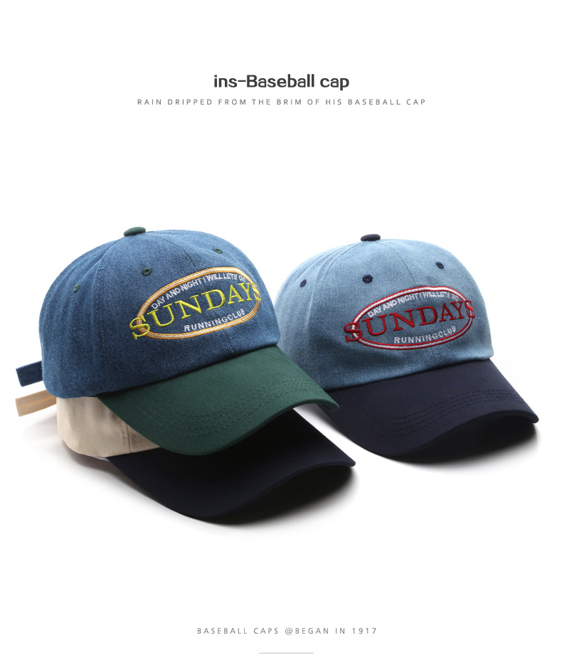 帽子女春秋复古牛仔拼色鸭舌帽户外男运动出行防晒遮阳棒球帽