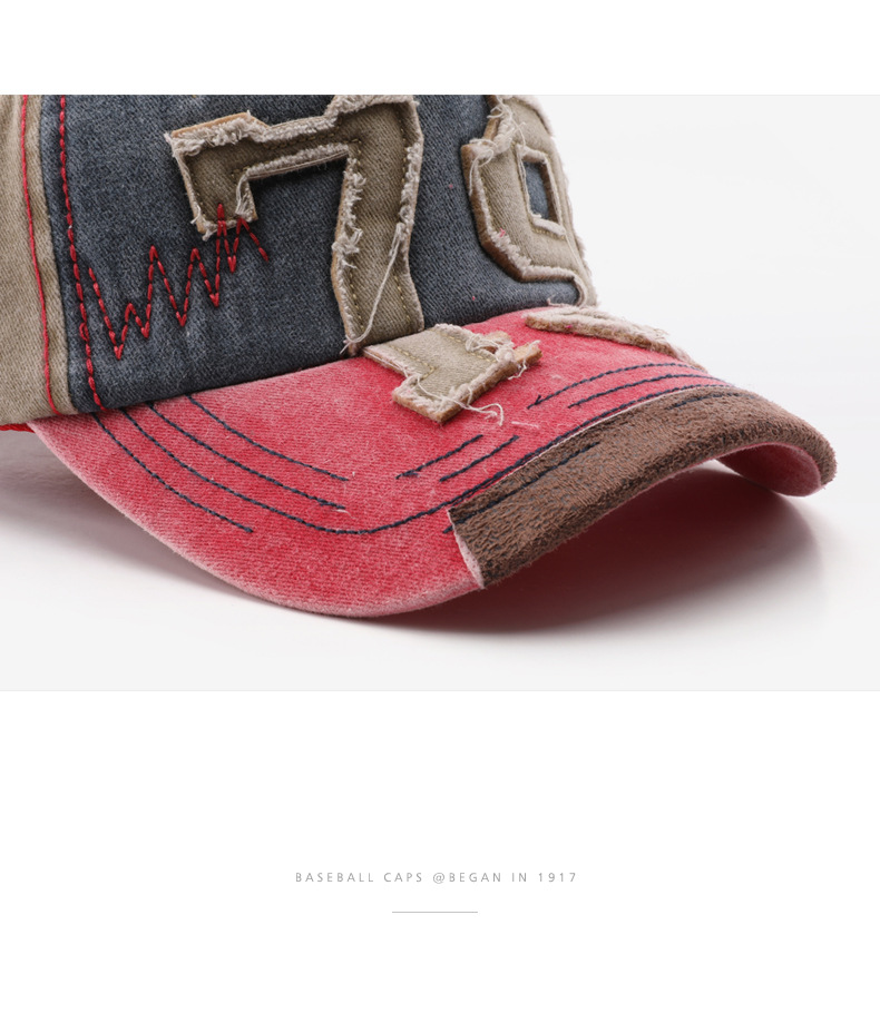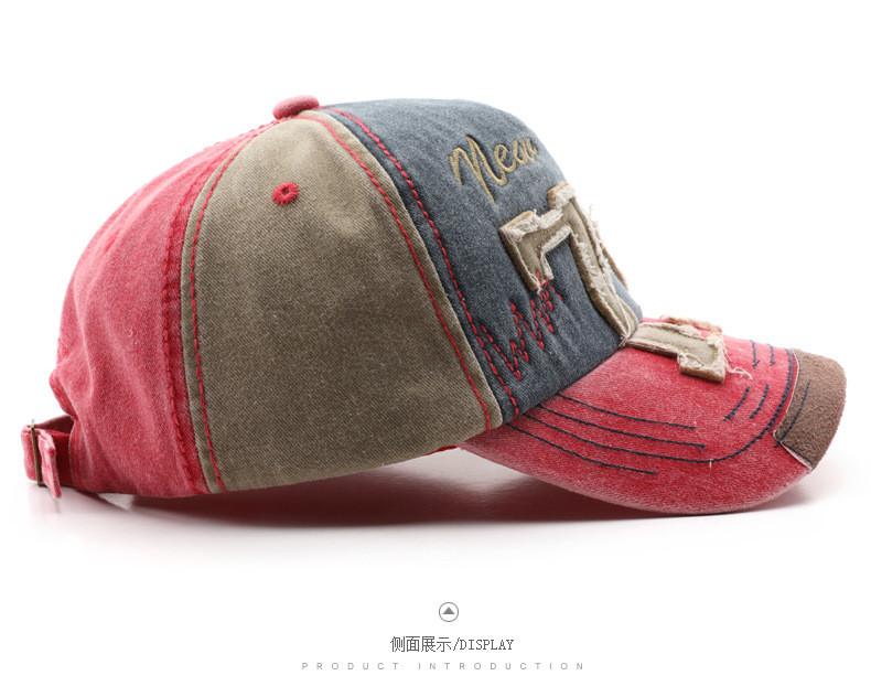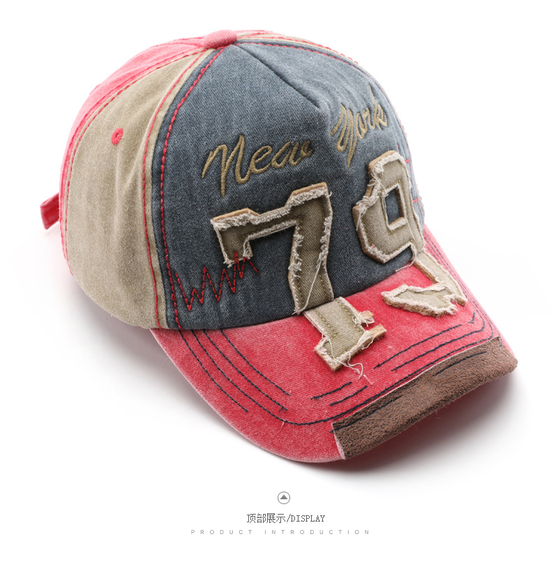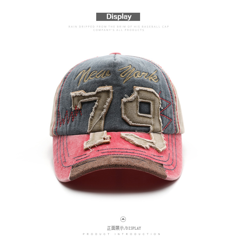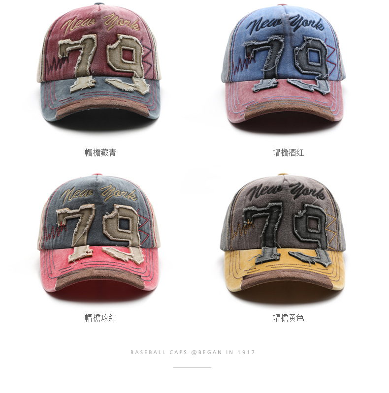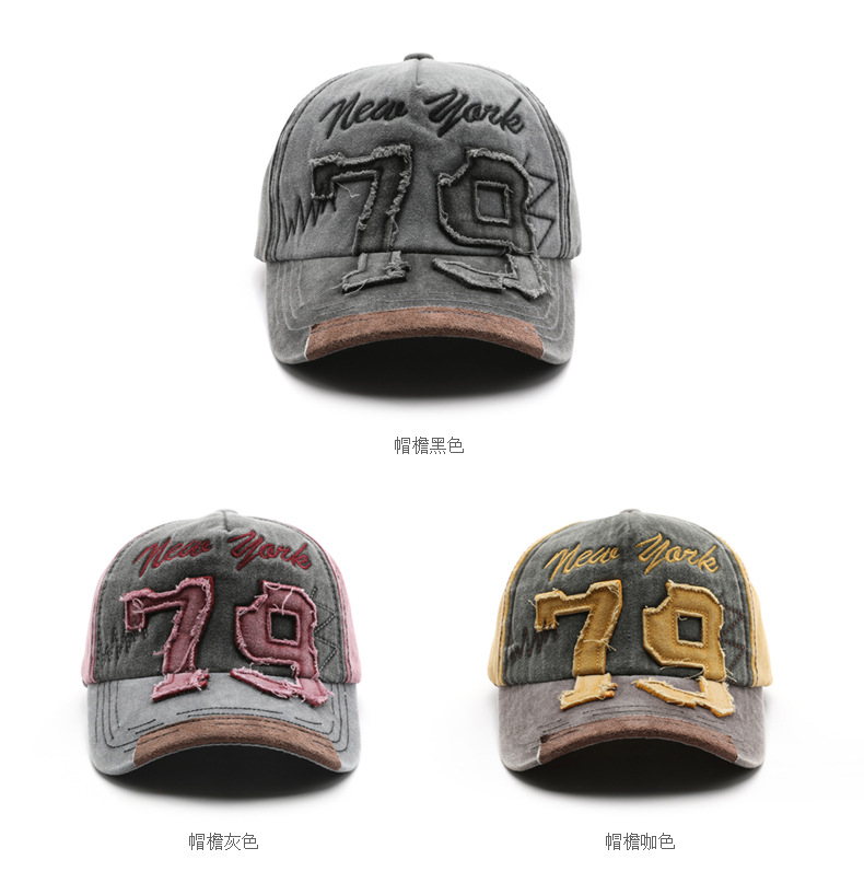 韩版个性复古男水洗做旧数字刺绣鸭舌帽户外女出行防晒遮阳棒球帽