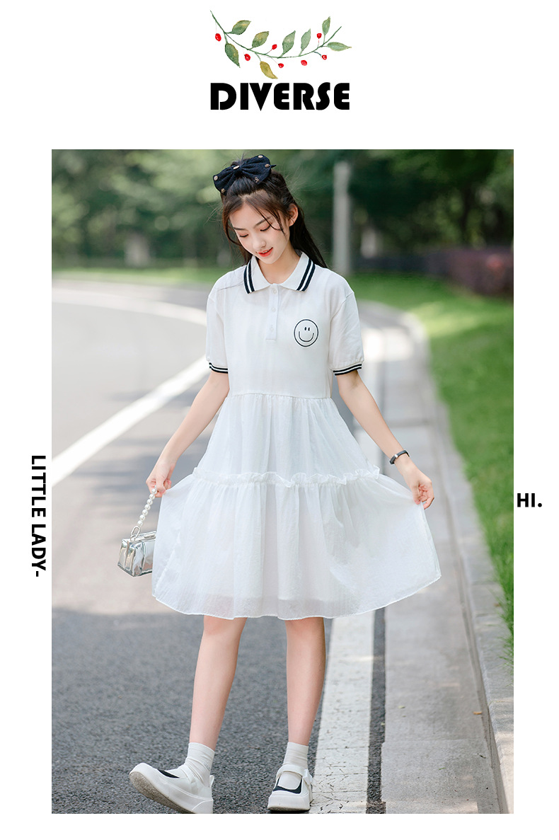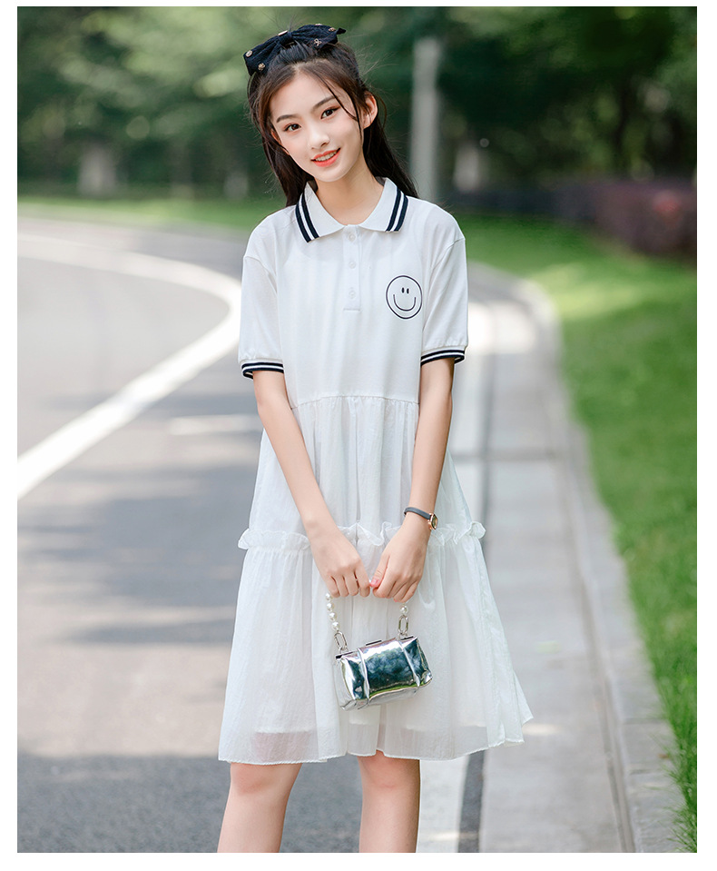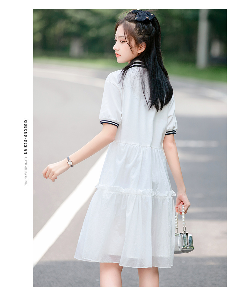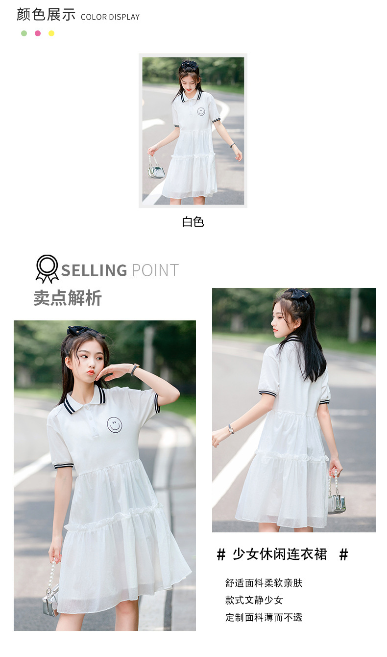 9977少女大童连衣裙夏装高初中学生网红女孩运动时尚POLO网球裙子