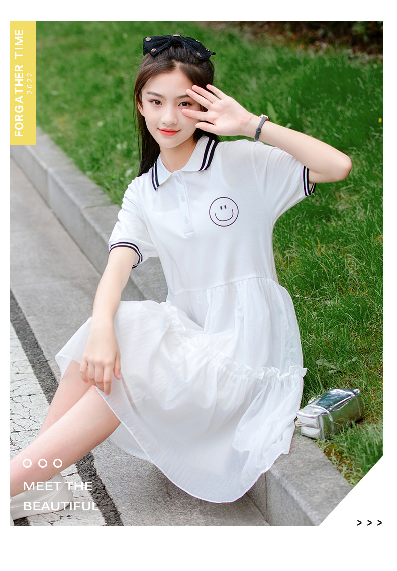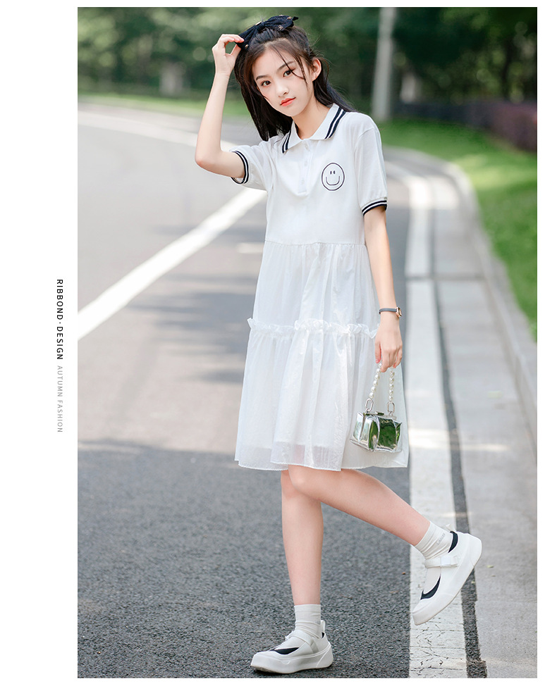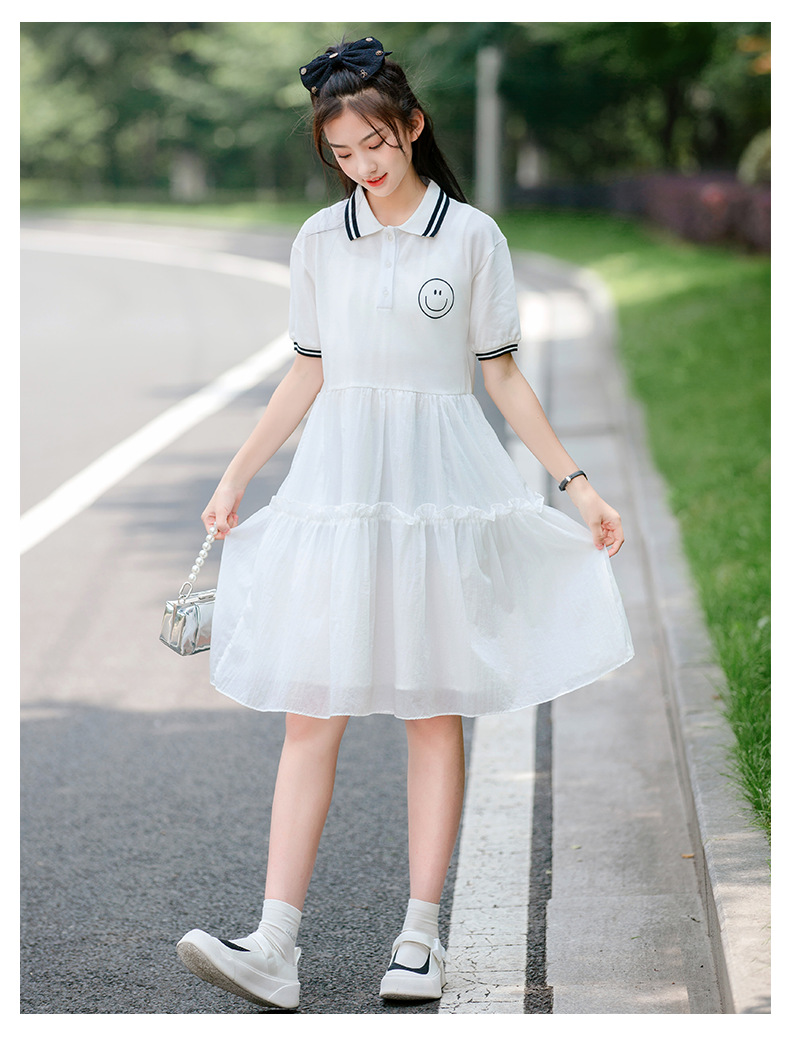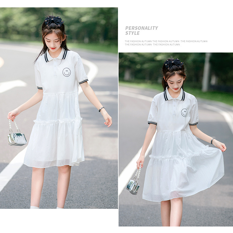 9977少女大童连衣裙夏装高初中学生网红女孩运动时尚POLO网球裙子