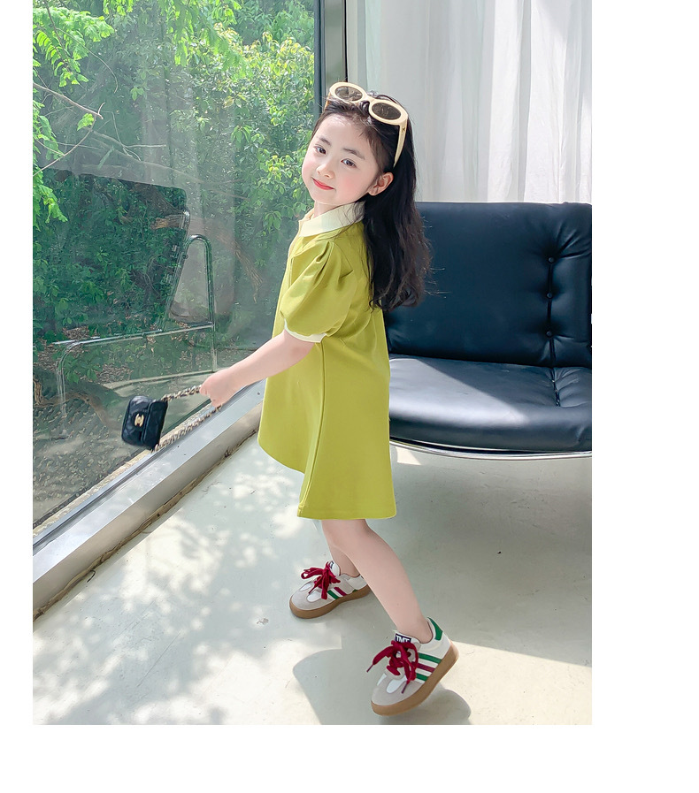 女童夏季连衣公主裙洋气POLO领裙子儿童泡泡袖连衣裙薄款公主裙