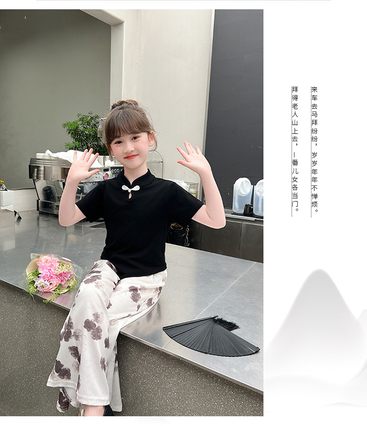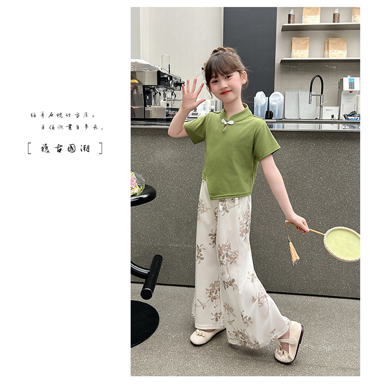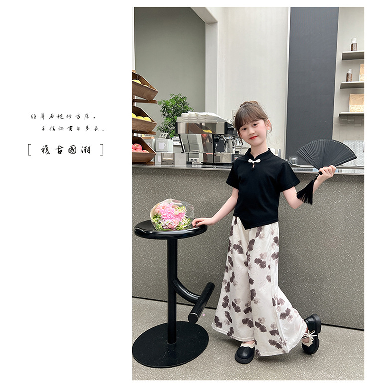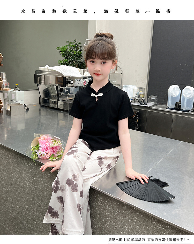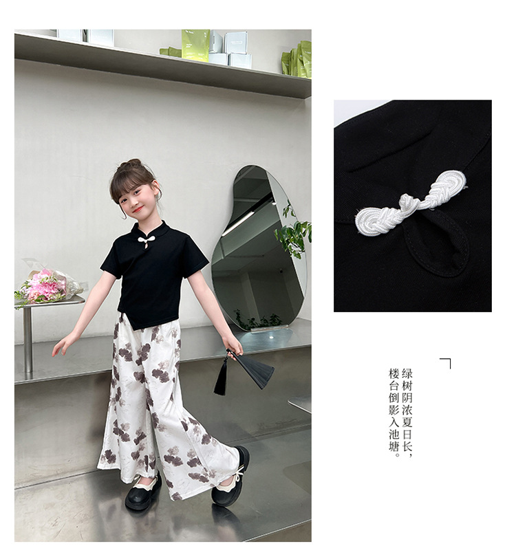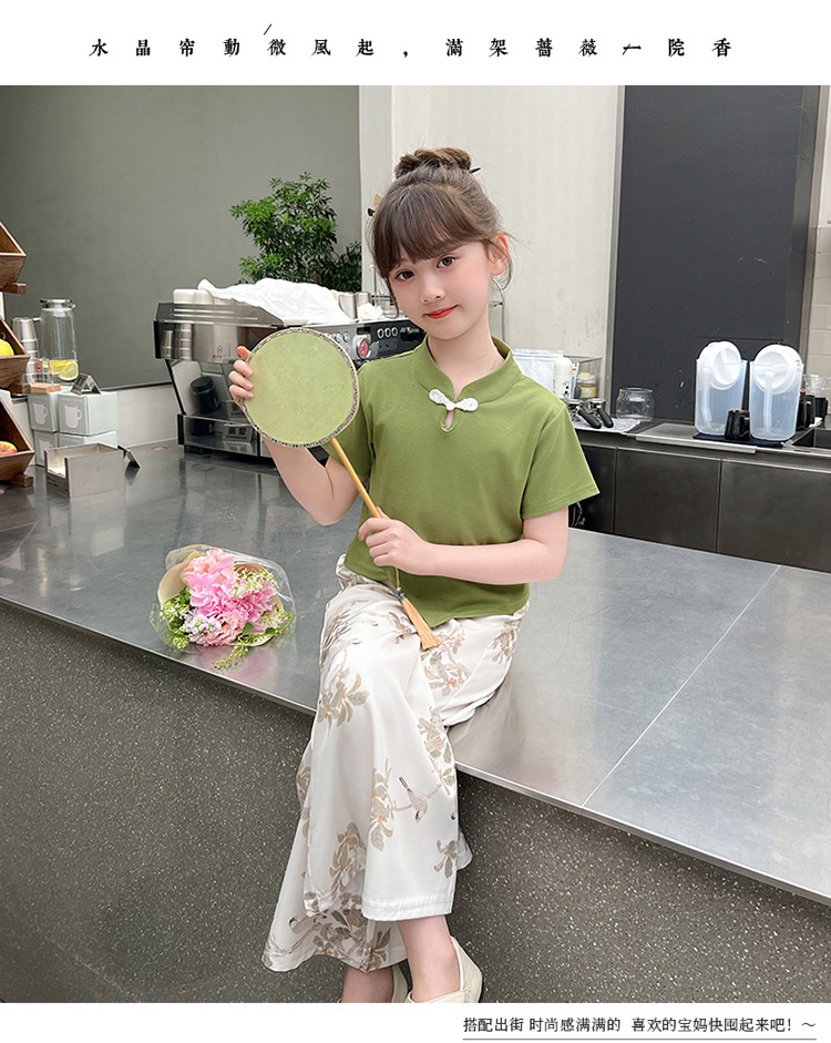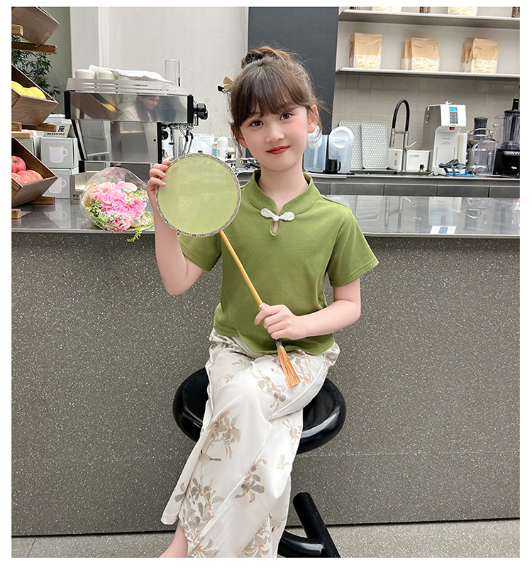 女童国风短袖T恤阔腿裤夏款盘扣新中式国风套装