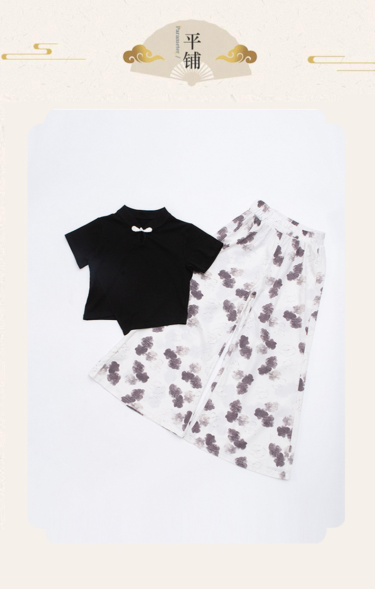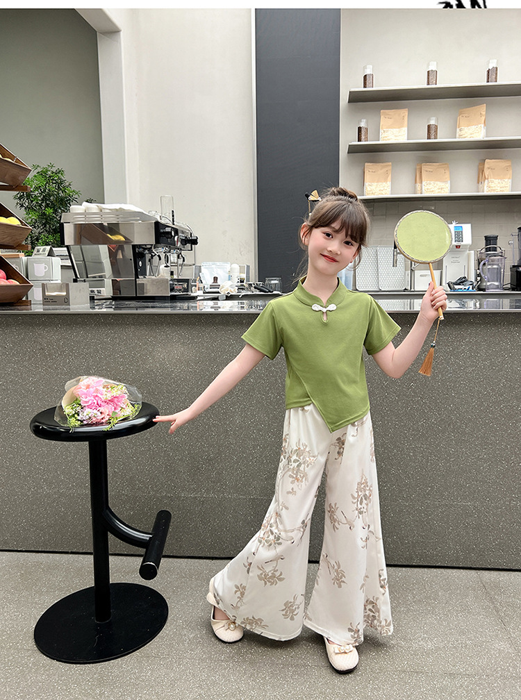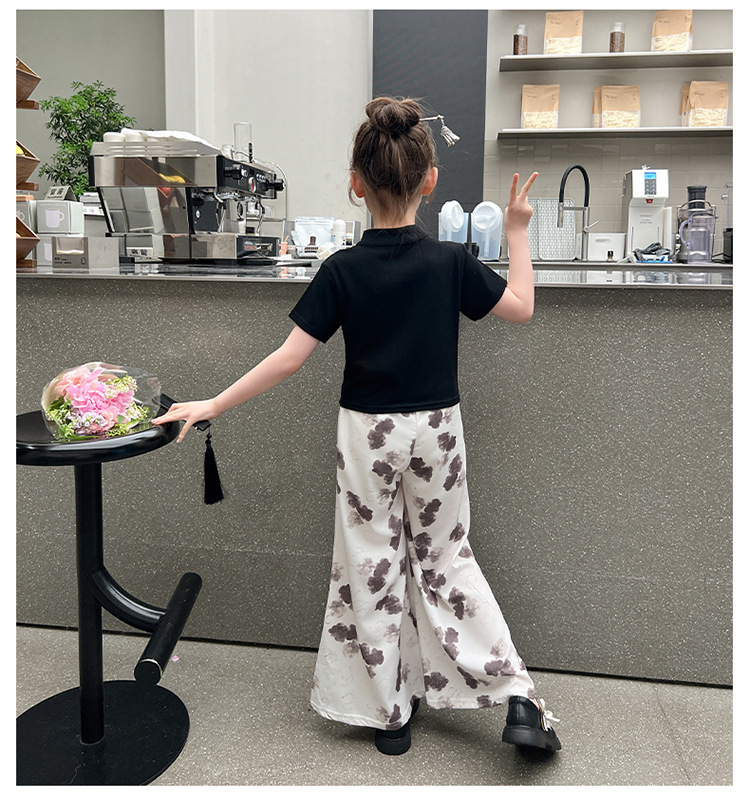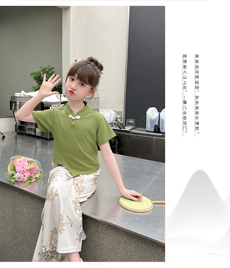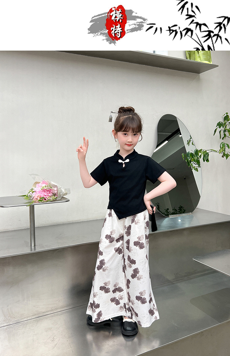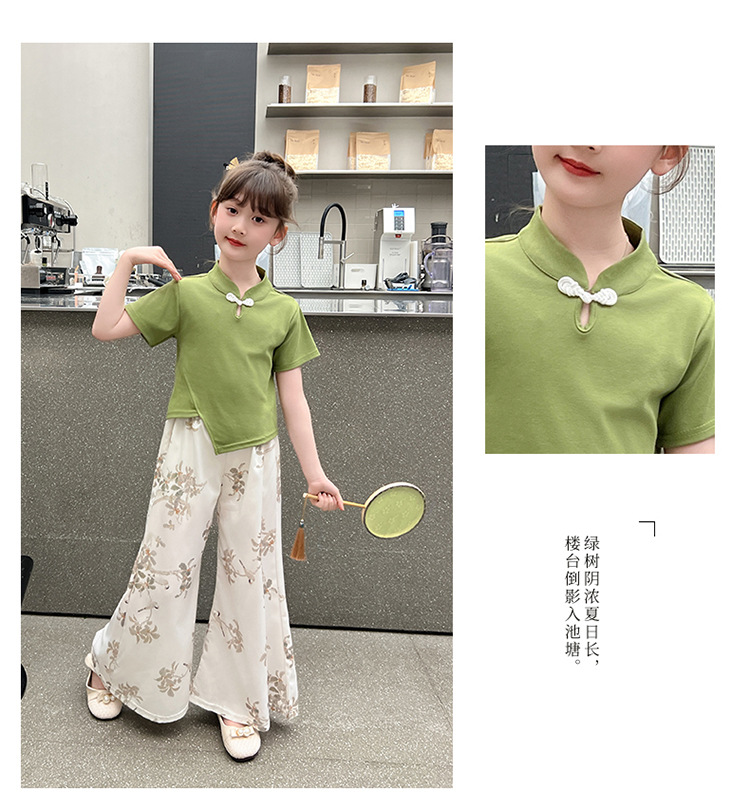 女童国风短袖T恤阔腿裤夏款盘扣新中式国风套装