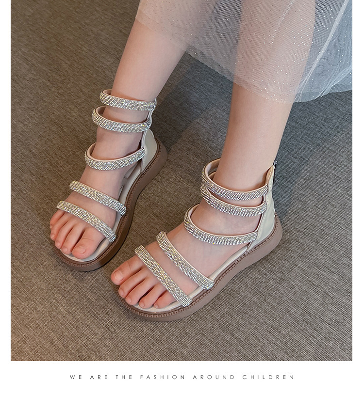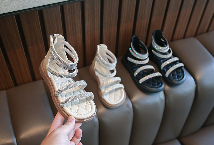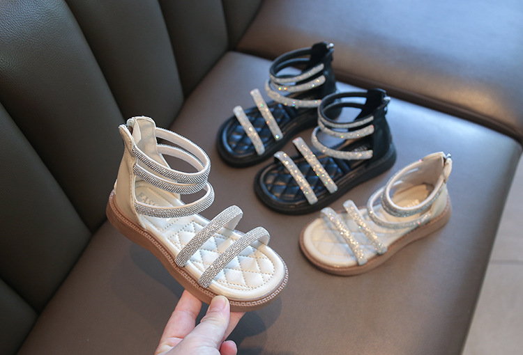 女童凉鞋2023夏季新款童鞋儿童软底时尚公主鞋水钻鞋子女