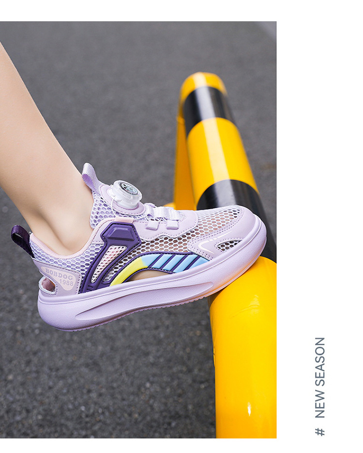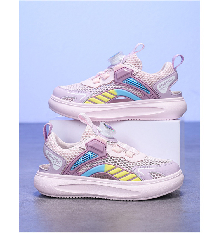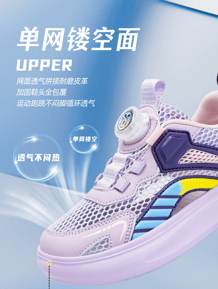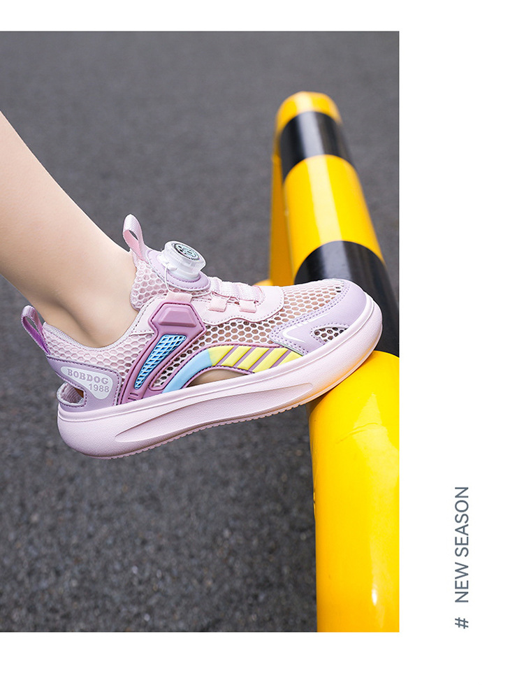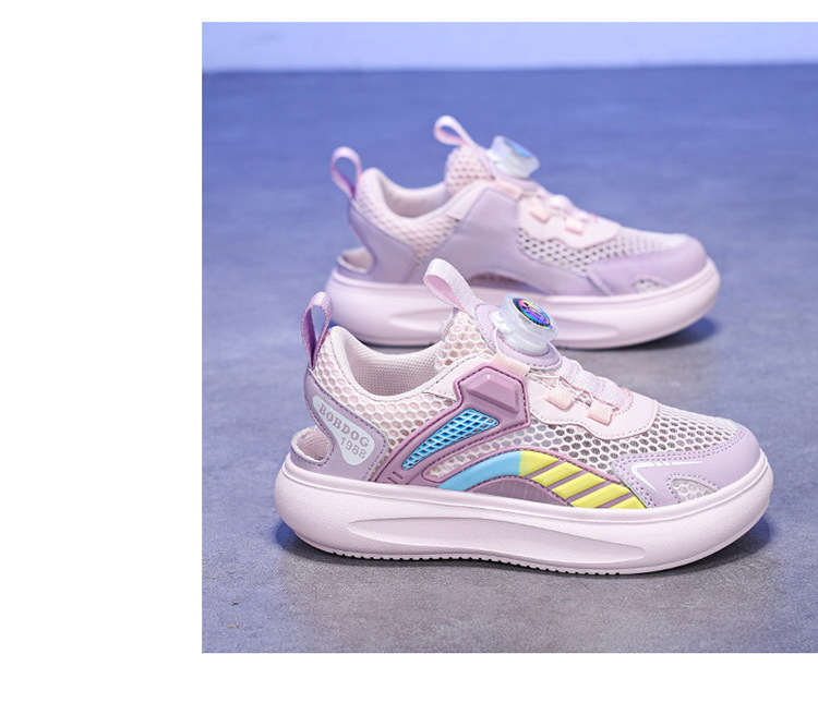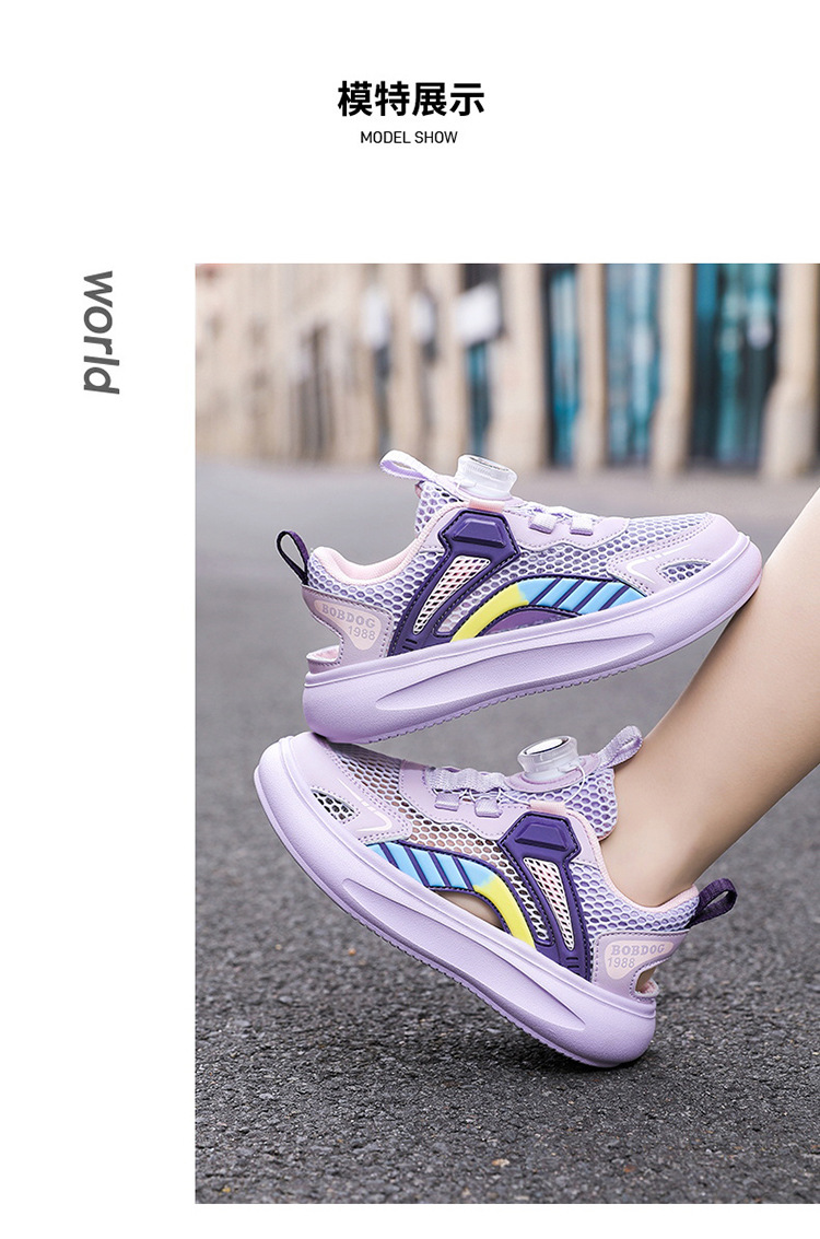 巴布豆童鞋女童运动鞋夏季2024新款轻盈透气单网儿童镂空框子鞋子
