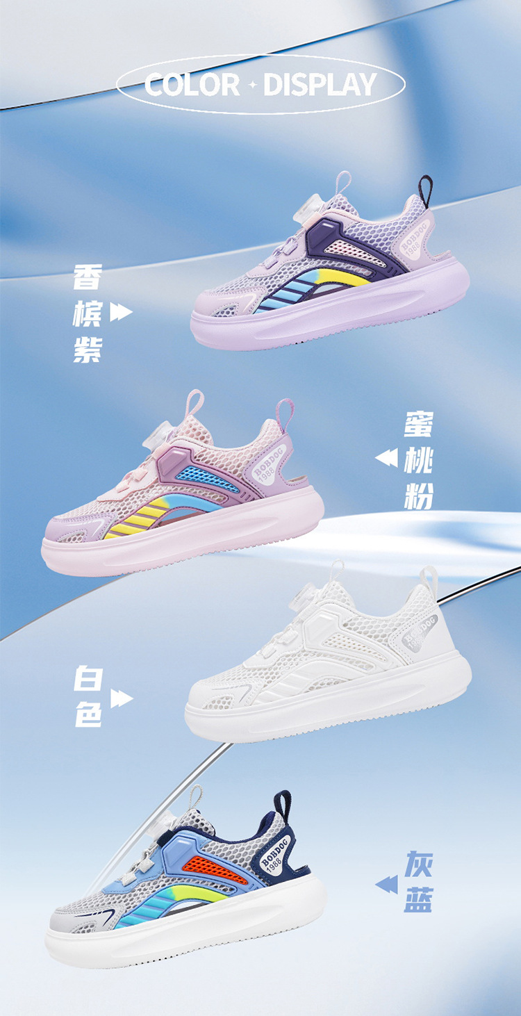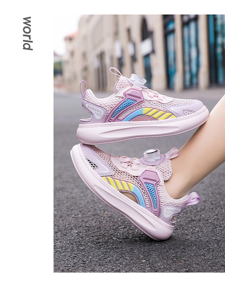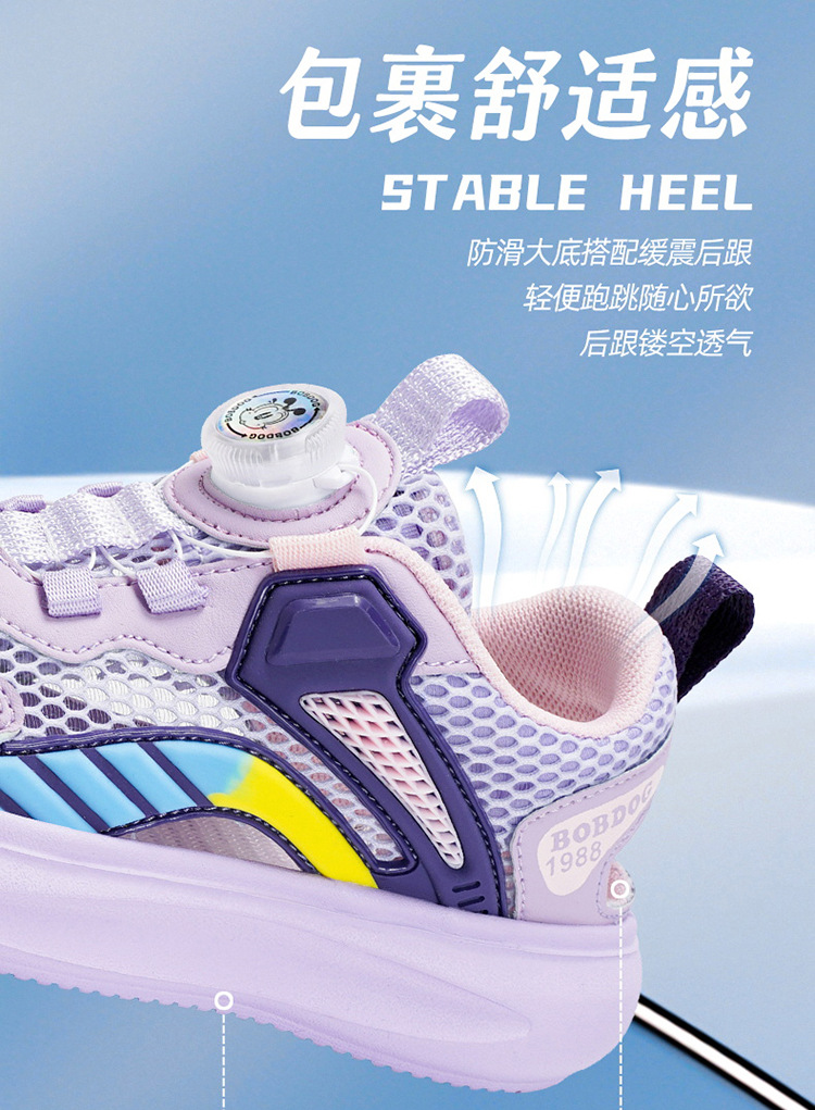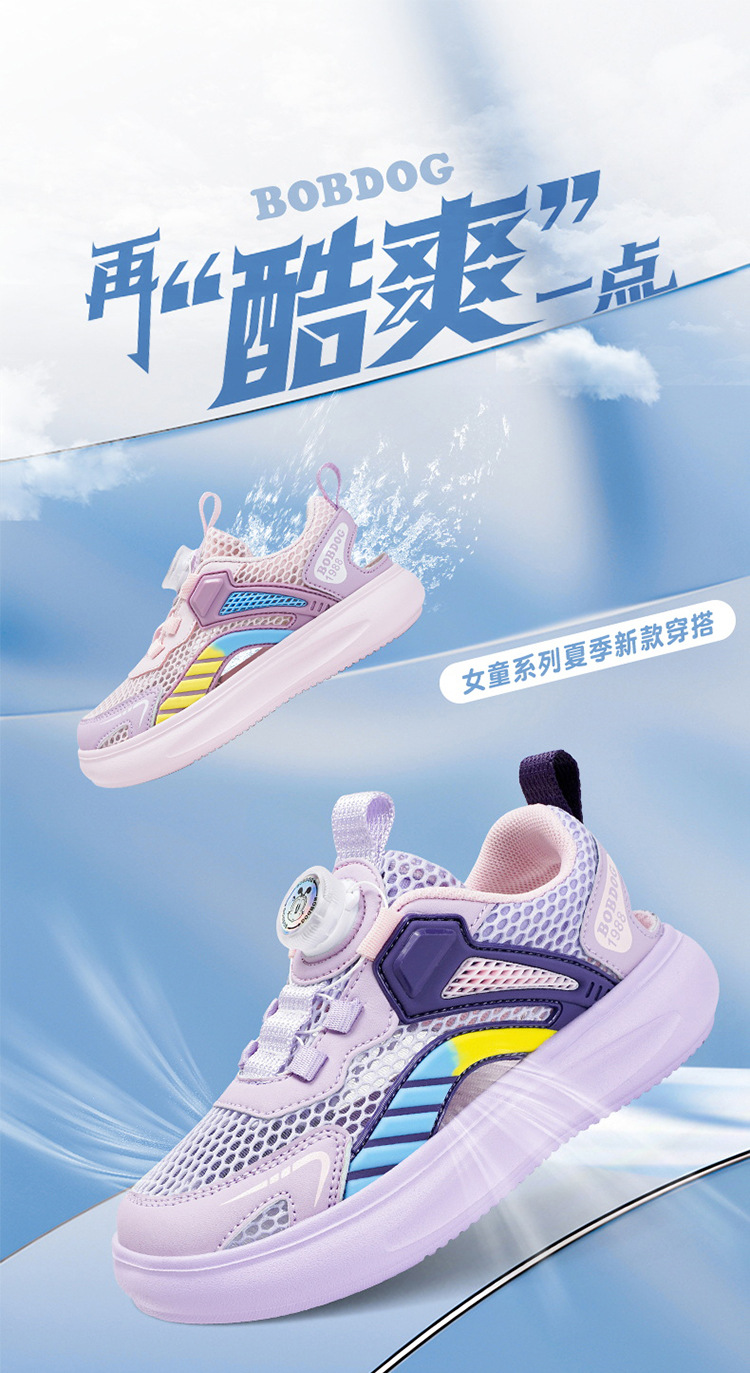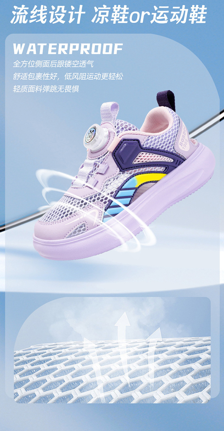 巴布豆童鞋女童运动鞋夏季2024新款轻盈透气单网儿童镂空框子鞋子