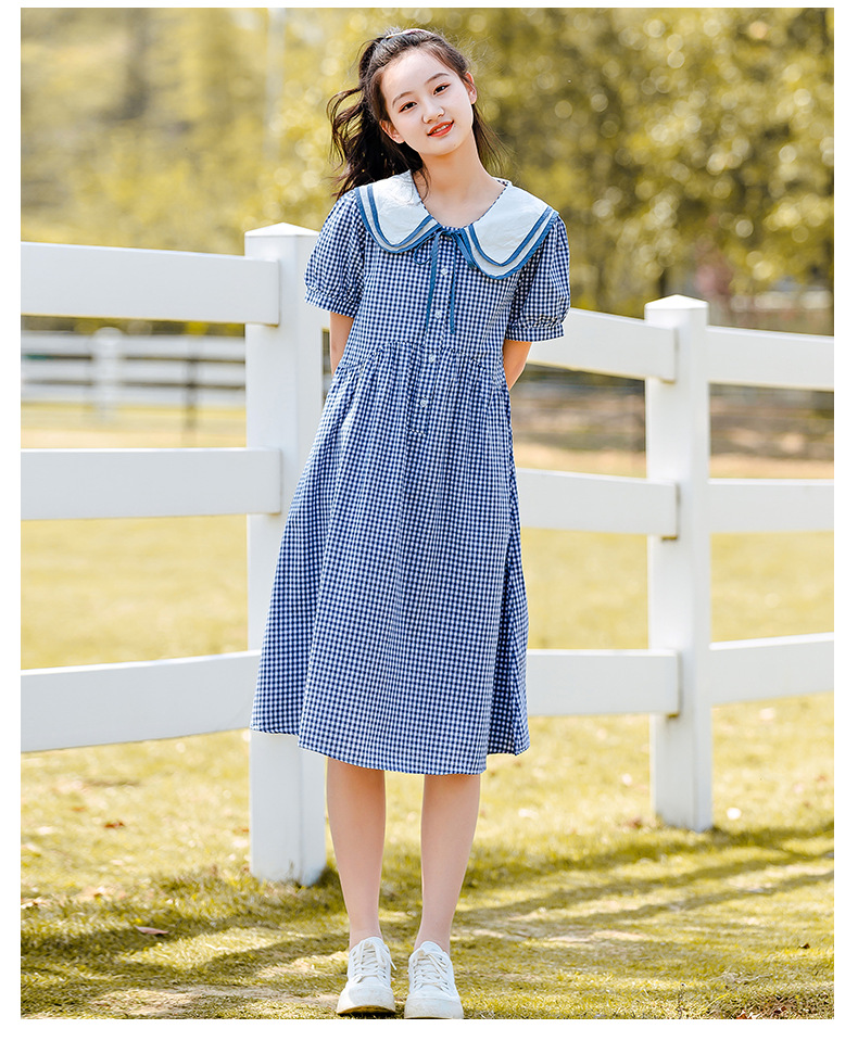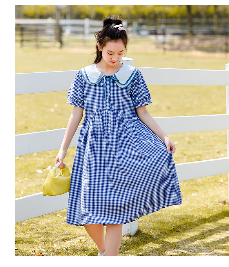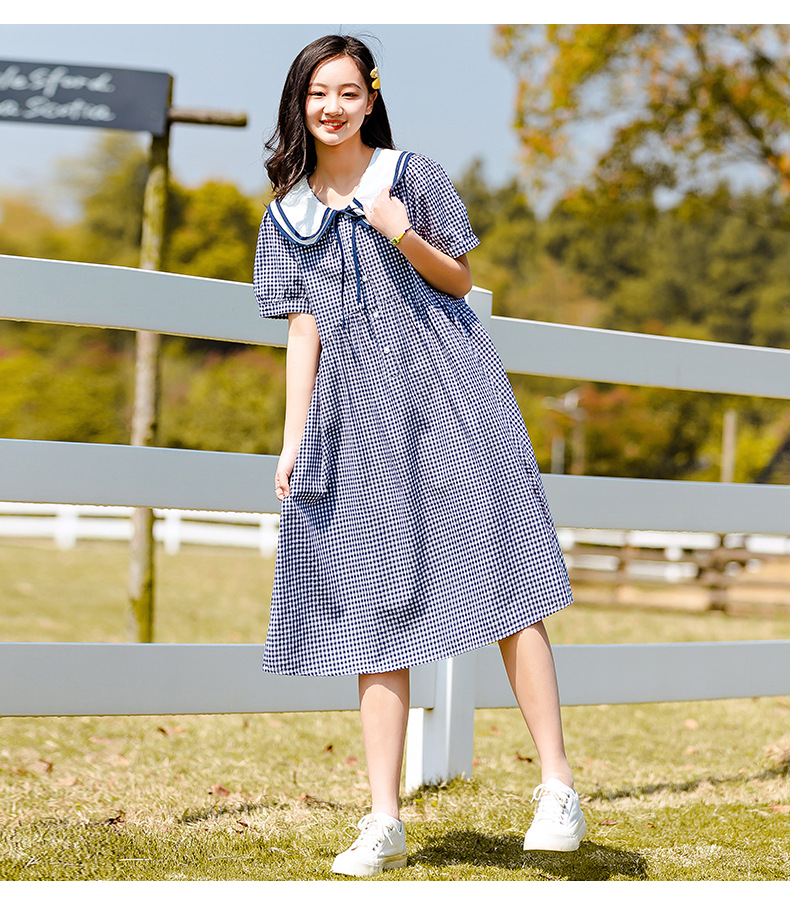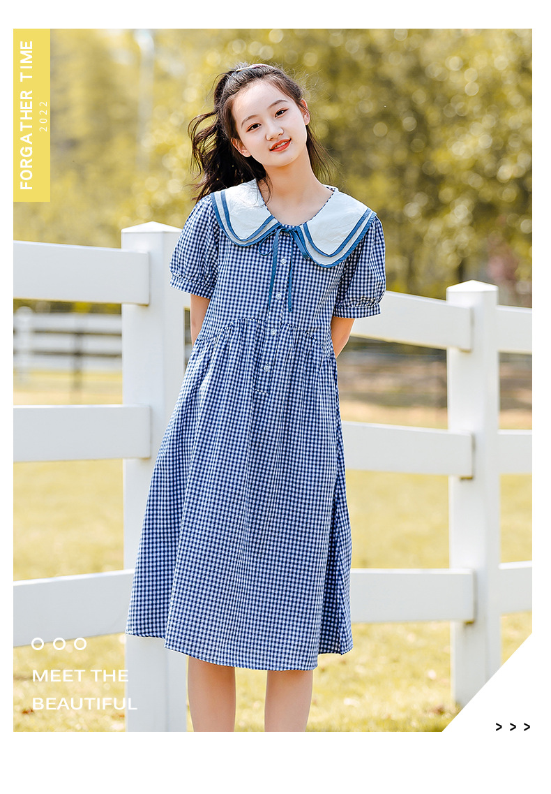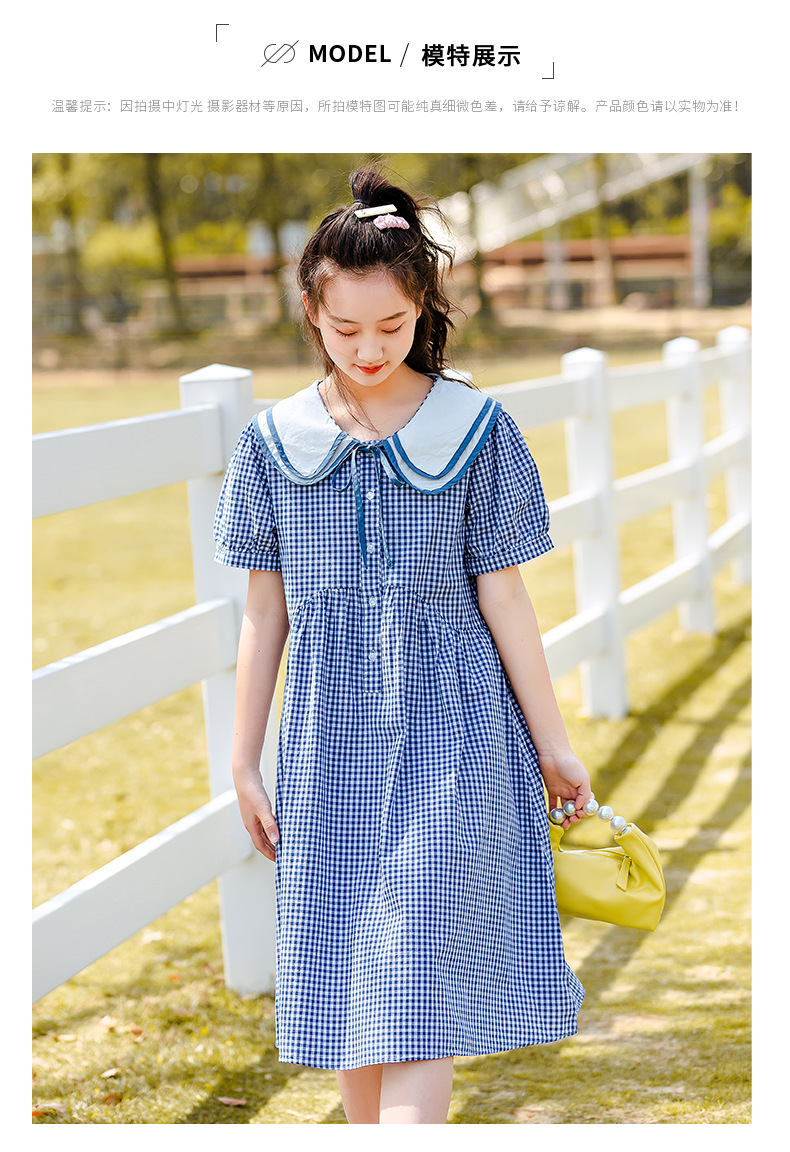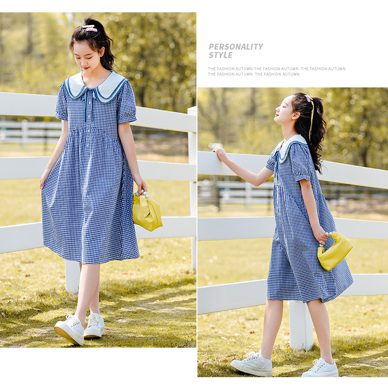 9951少女夏装连衣裙新款高中初中学生学院风女孩大童甜美娃娃领裙