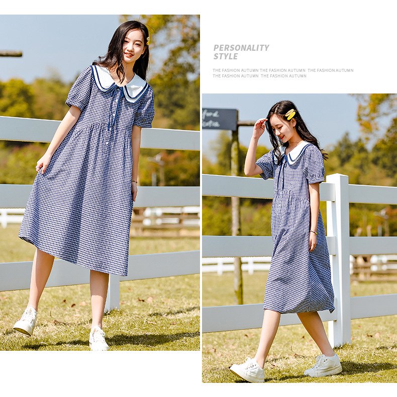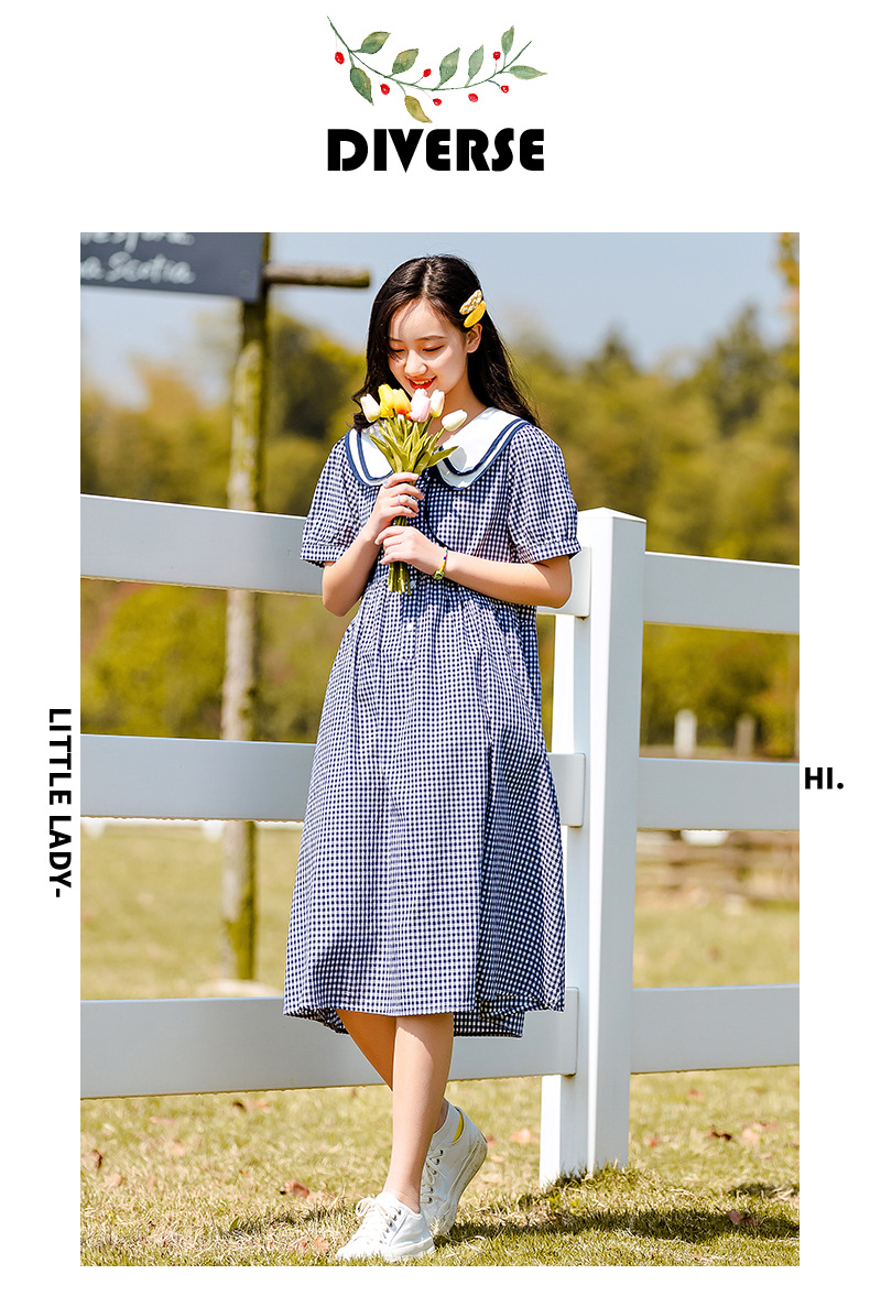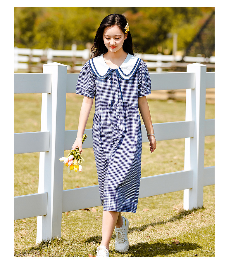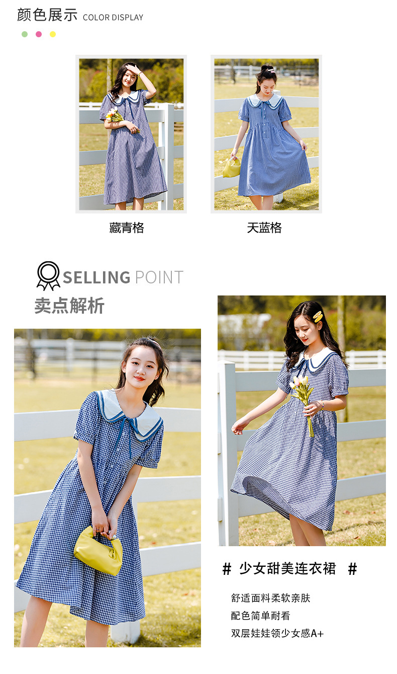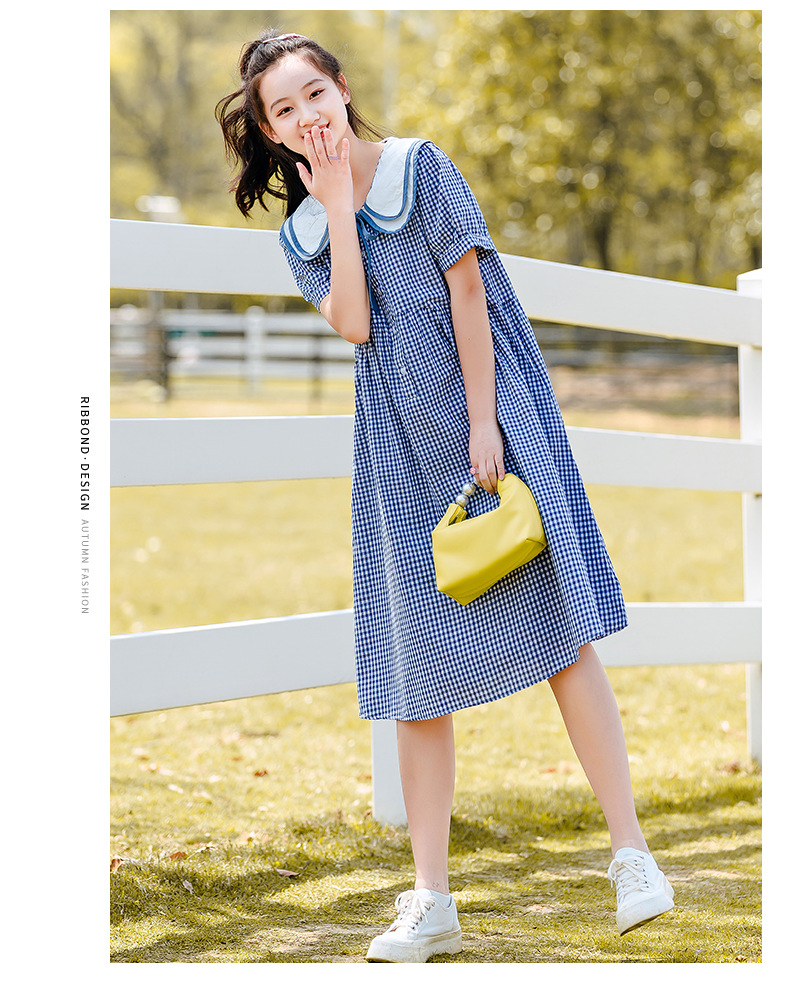 9951少女夏装连衣裙新款高中初中学生学院风女孩大童甜美娃娃领裙
