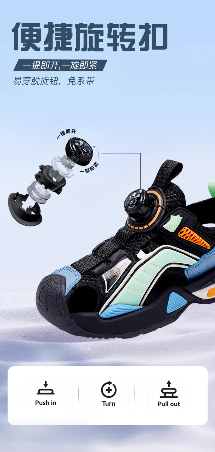 巴布豆男童鞋子夏季2024新款儿童运动凉鞋中大童男孩包头沙滩凉拖