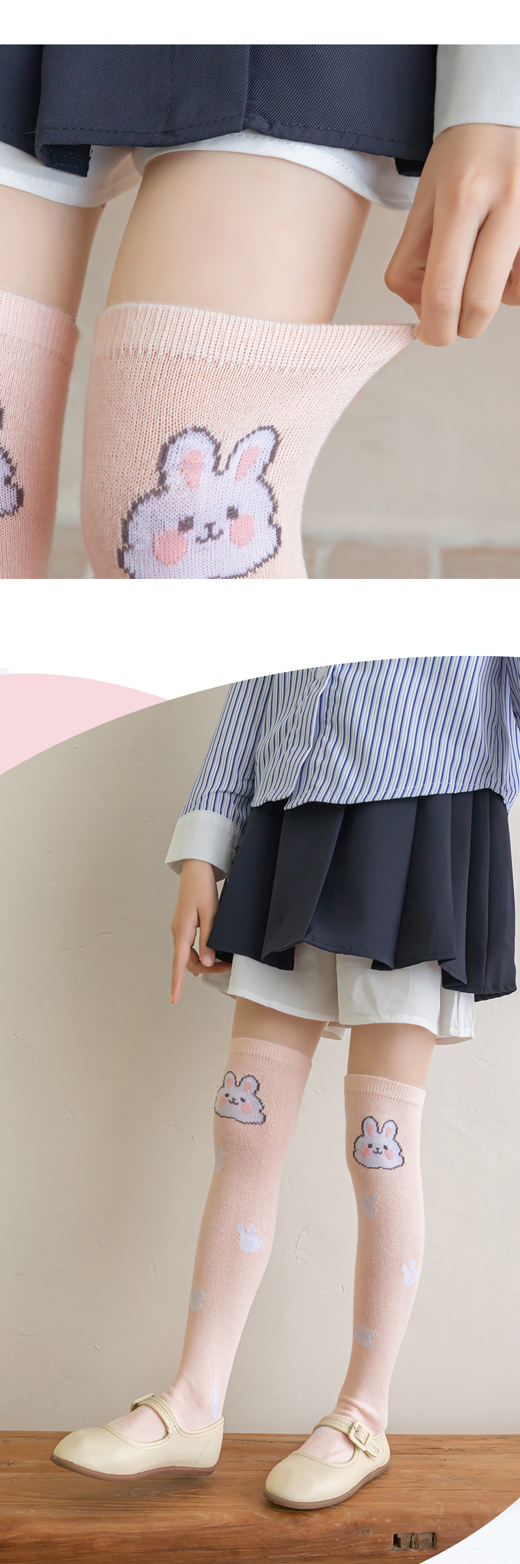 儿童长筒袜卡通兔子春夏薄款袜子女童儿童透气过膝宝宝高筒袜批发
