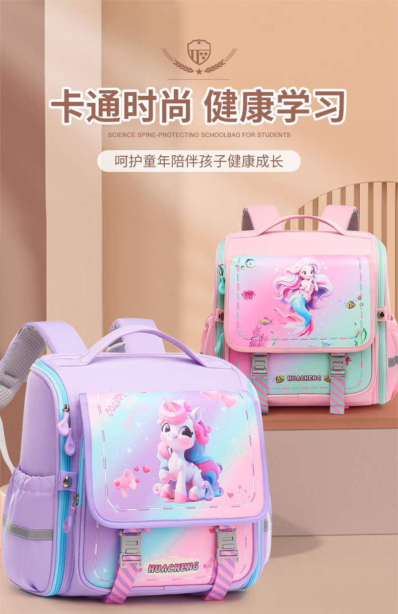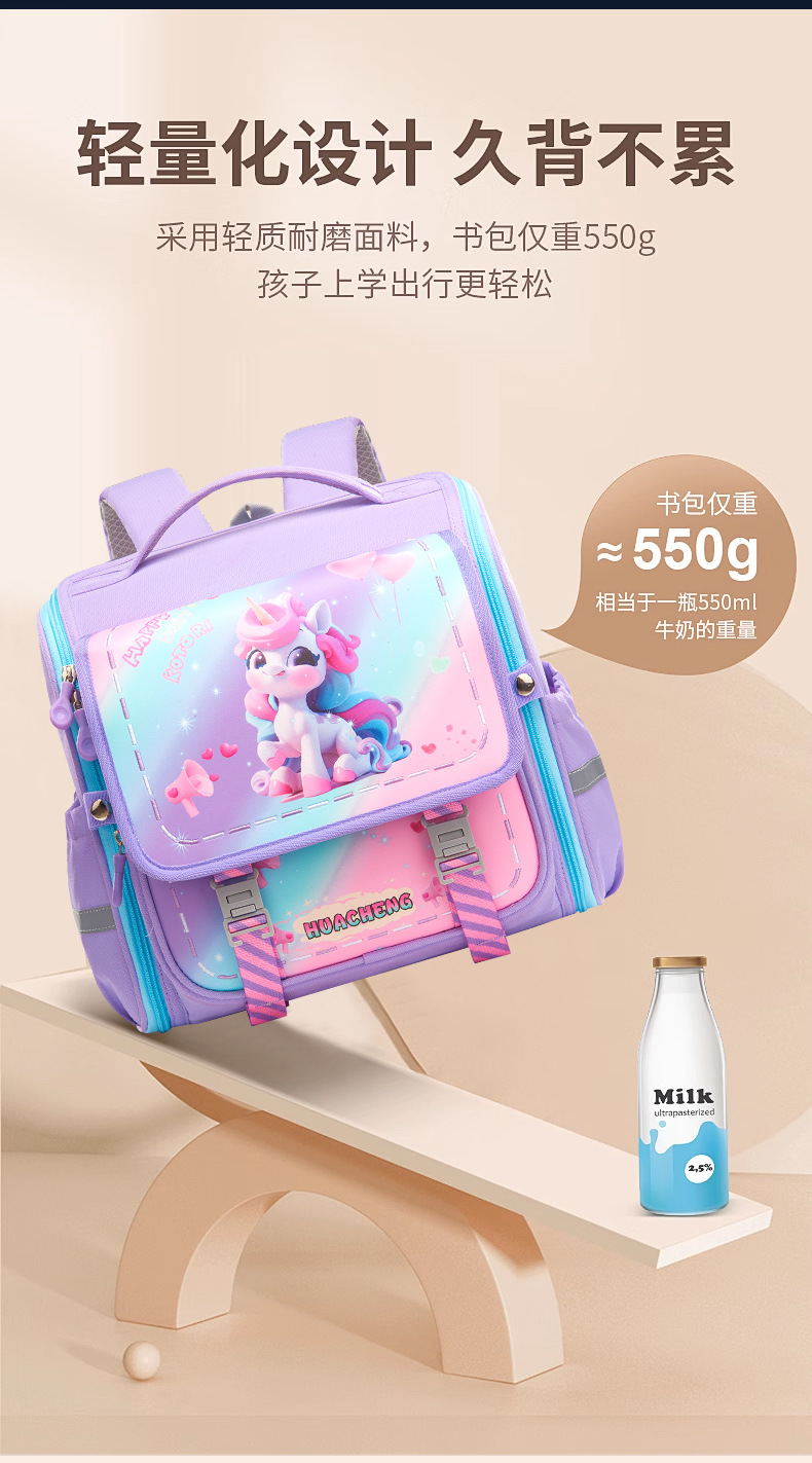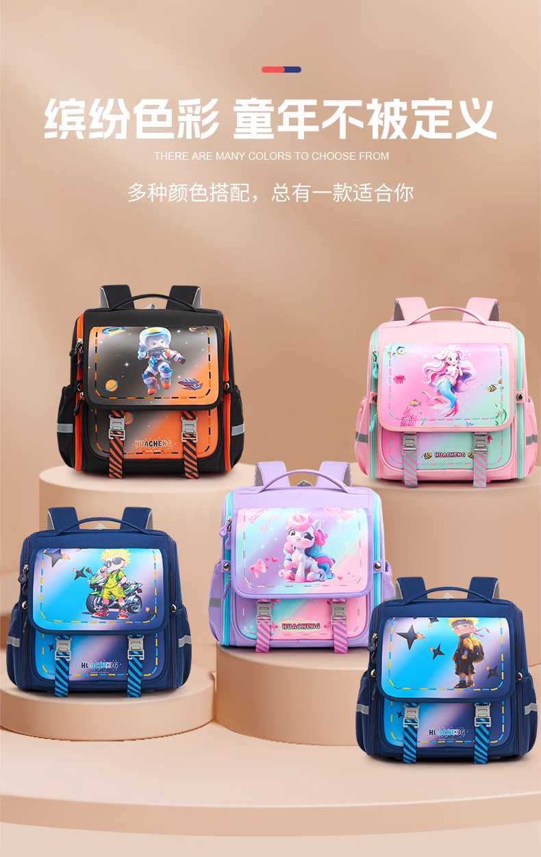 新款横版小学生书包 儿童一二三年级减负护脊防泼水卡通双肩背包