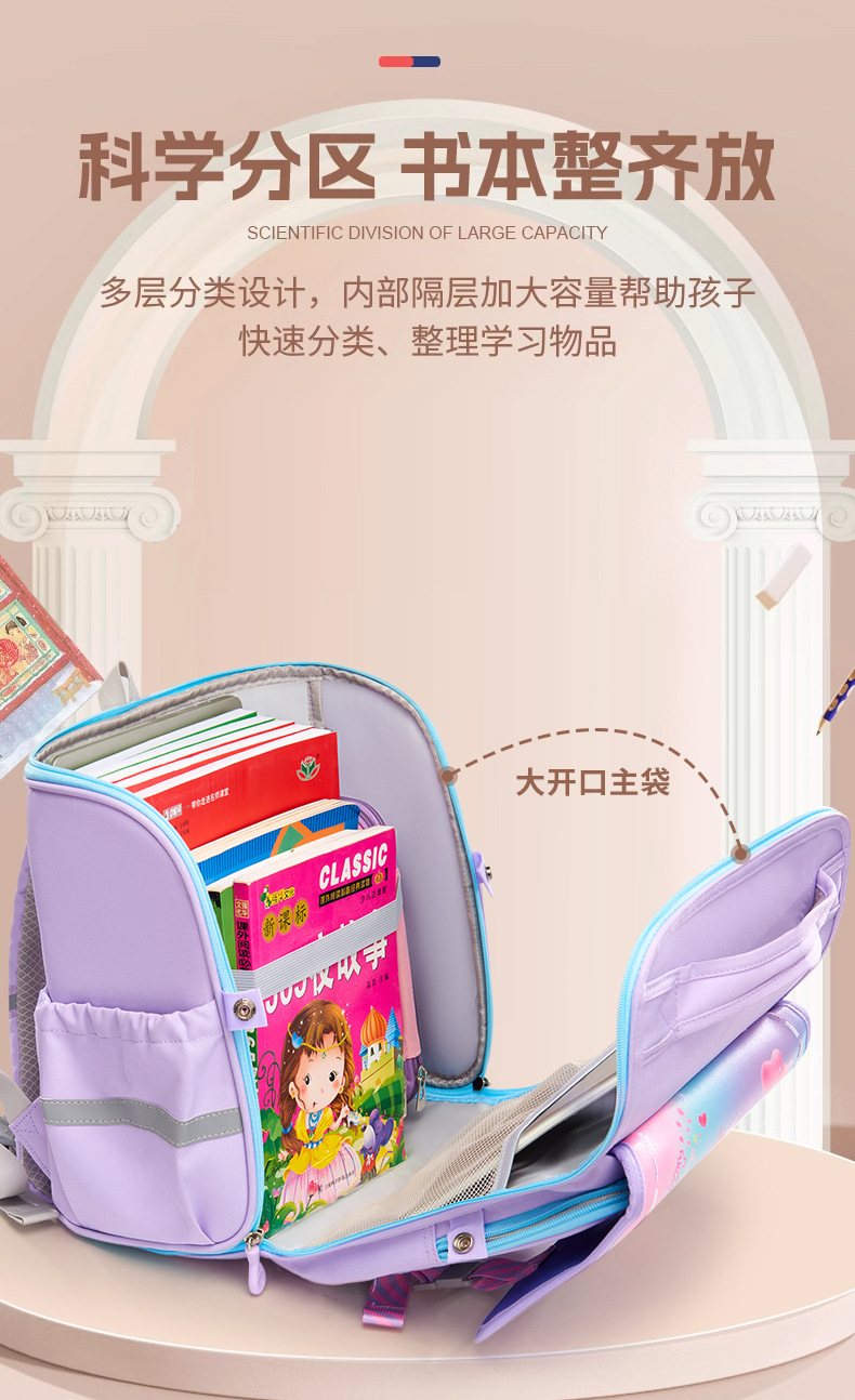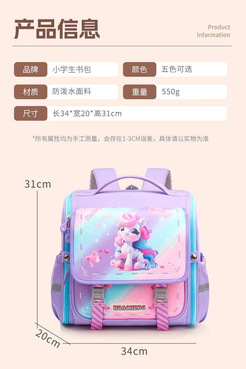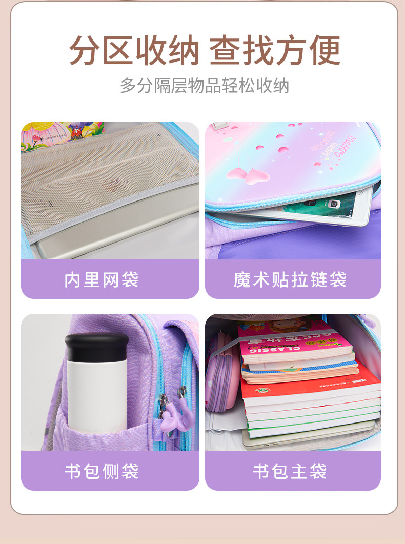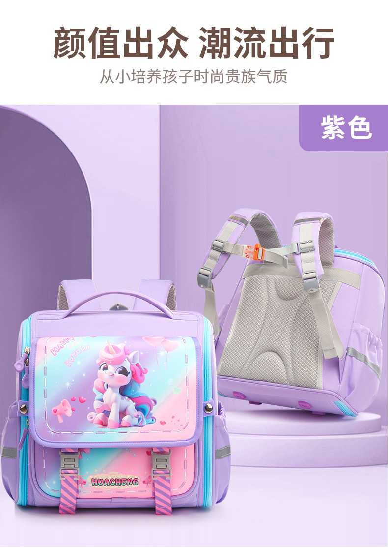 新款横版小学生书包 儿童一二三年级减负护脊防泼水卡通双肩背包